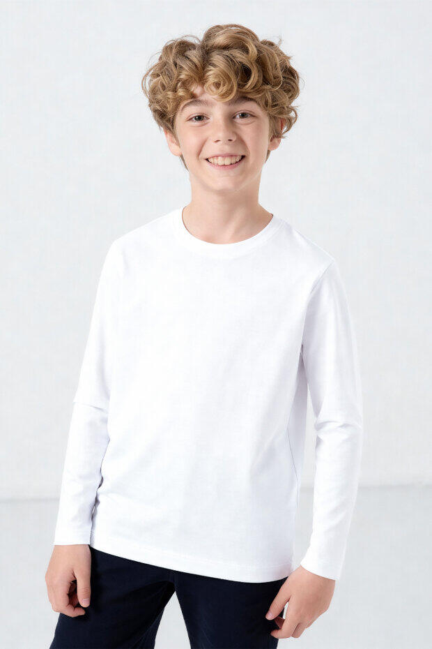 Beyaz O Yaka Standart Fit Basic Uzun Kollu Unisex Çocuk T-Shirt - 11329