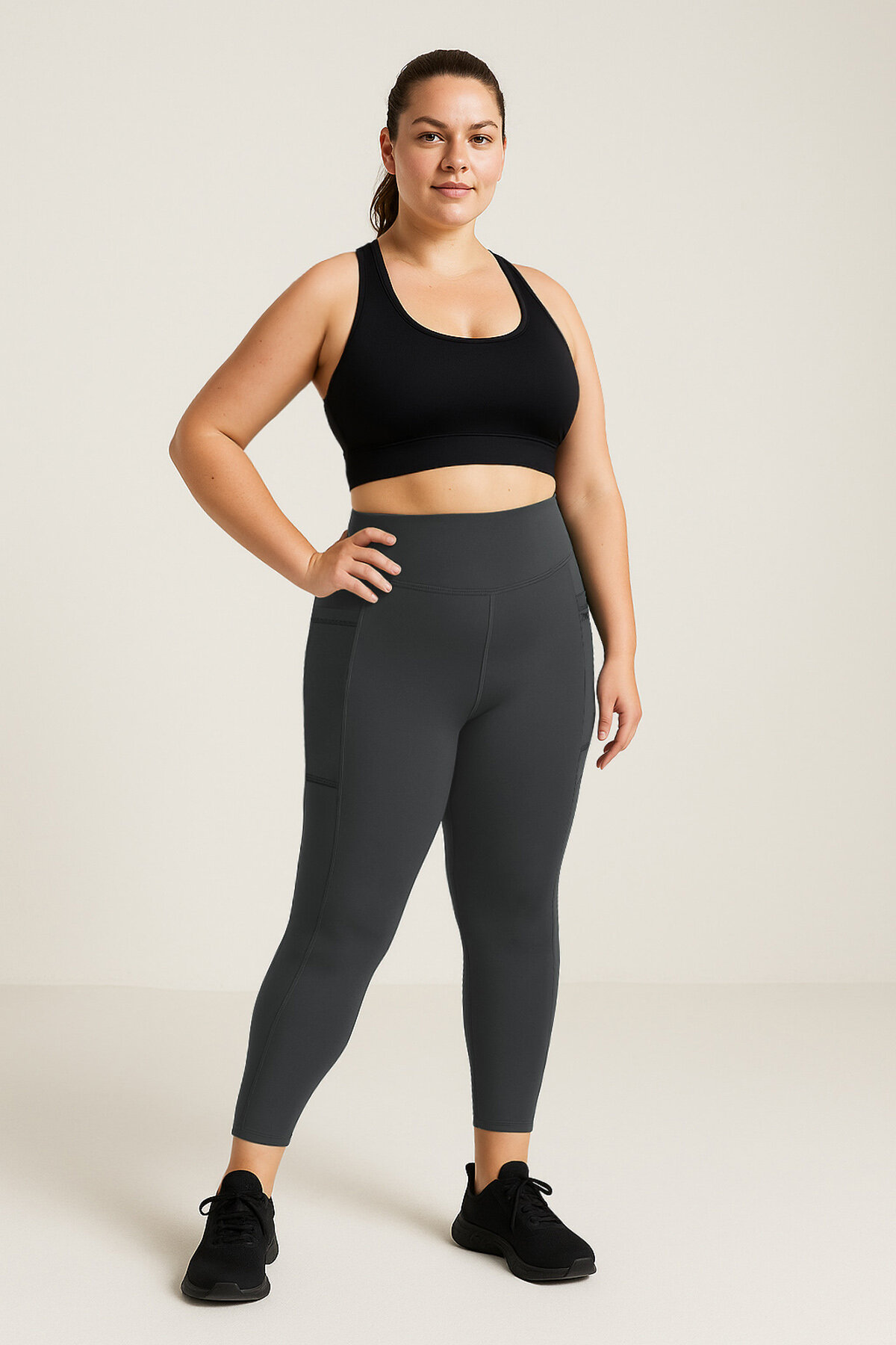 Antrasit Esnek Standart Fit Performans Battal Büyük Beden Kadın Tayt - 94652