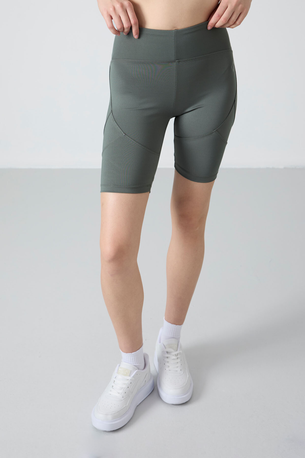 Haki Esnek Standart Fit Performans Kadın Biker Tayt - 91013