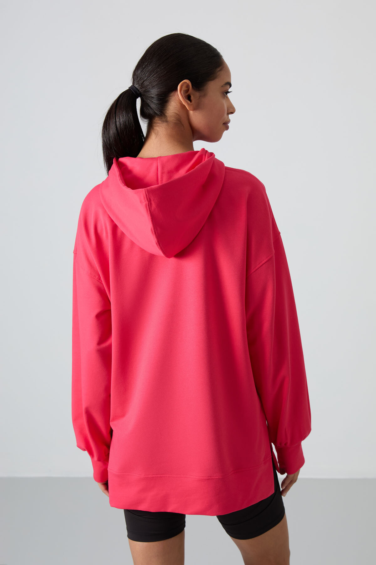 Viva Kırmızı Balon Kol Yazı Nakışlı Kadın Oversize Tunik Sweatshirt - 97163