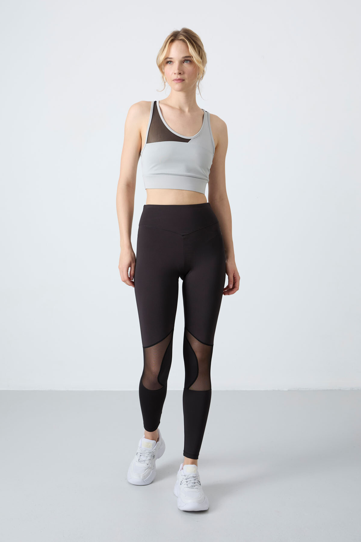 Taş - Siyah Esnek Standart Fit Performans Kadın Tayt Takım - 95331