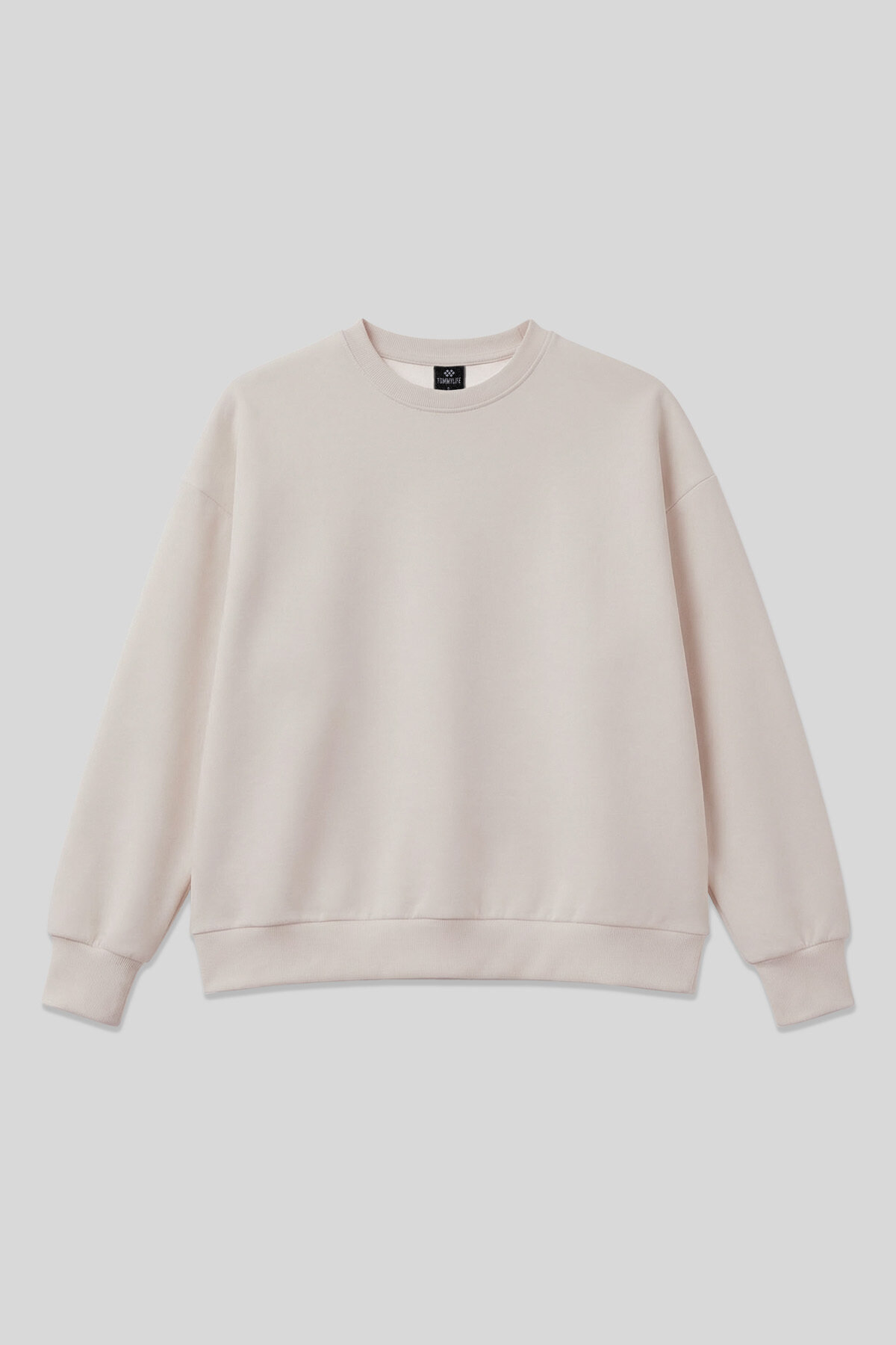Bej Basic O Yaka Oversize Kadın Sweatshirt - 97053
