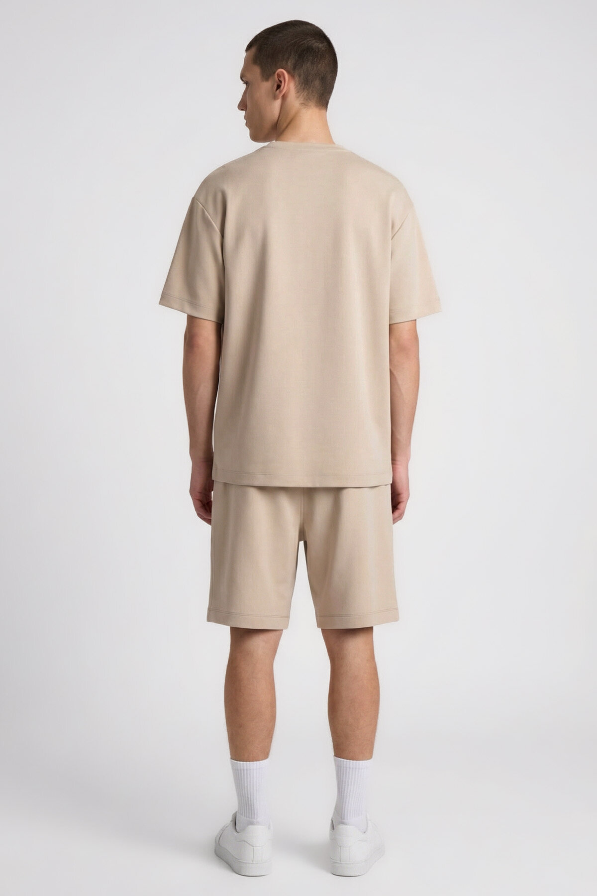 Bej Oversize Fit Basic Erkek Şort Takım - 85292