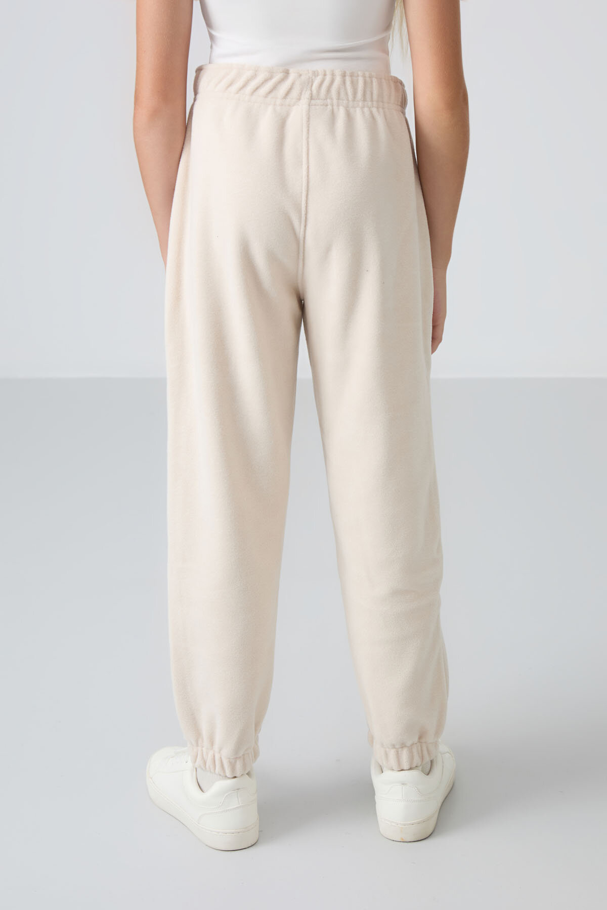 Bej Kalın Yumuşak Dokulu Standart Fit Nakışlı Polar Kız Çocuk Eşofman Alt - 75155