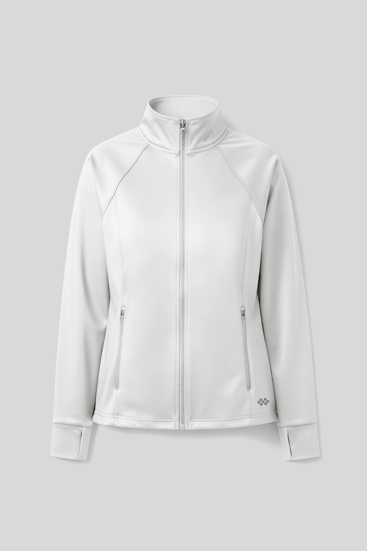 Beyaz Fermuarlı Dik Yaka Basic Rahat Form Kadın Koşu Ceketi - 97310
