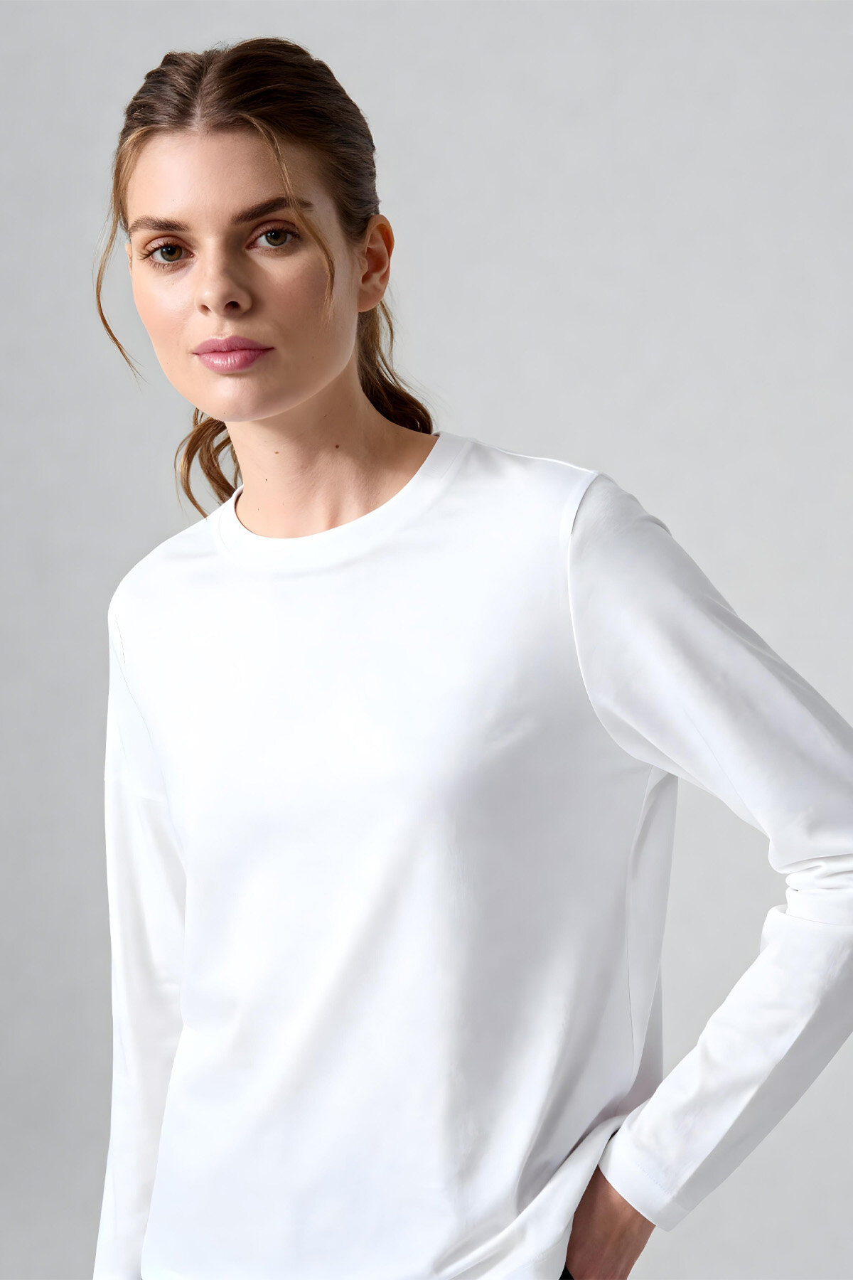 Beyaz O Yaka Standart Fit Uzun Kollu Basic Kadın T-Shirt - 97312