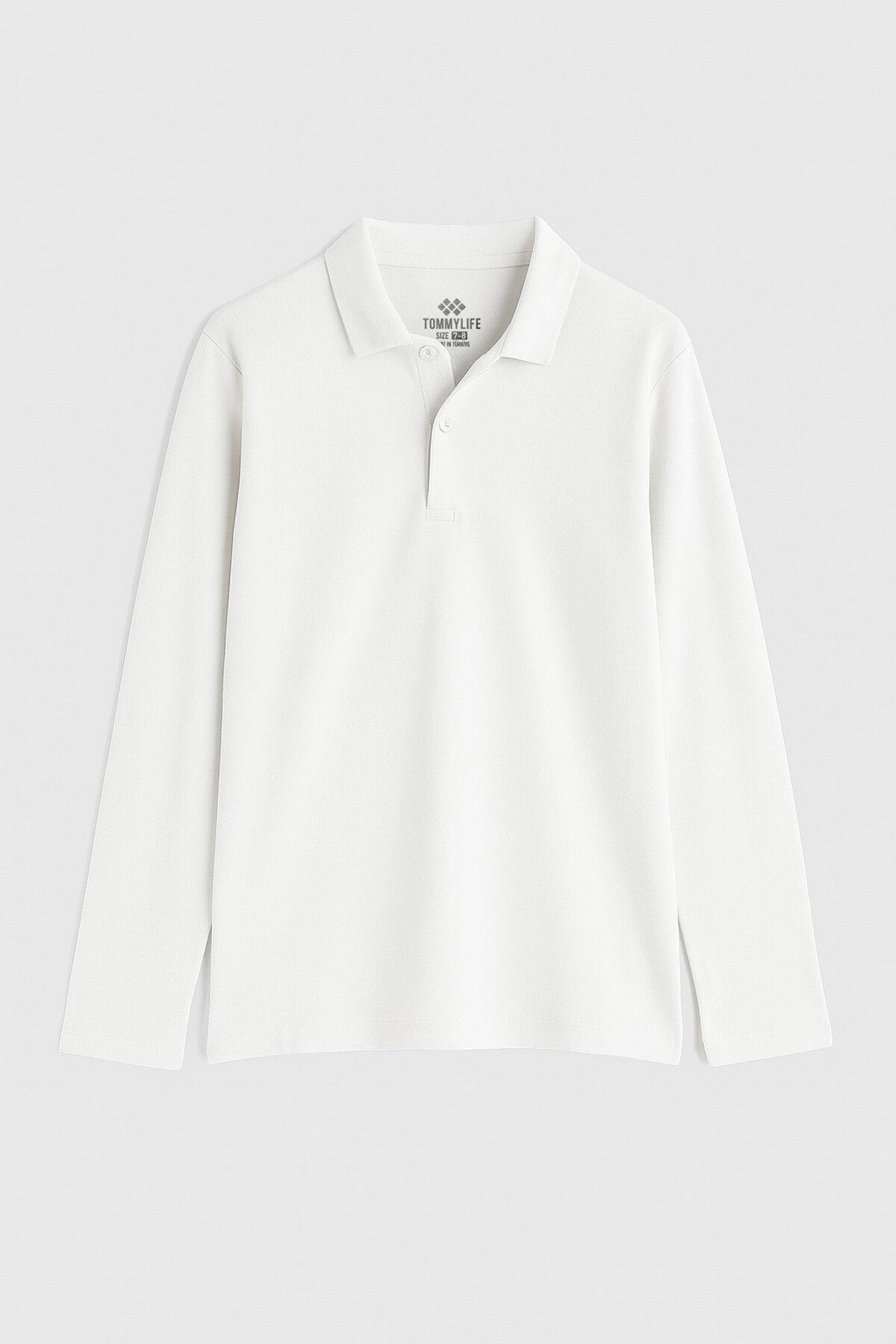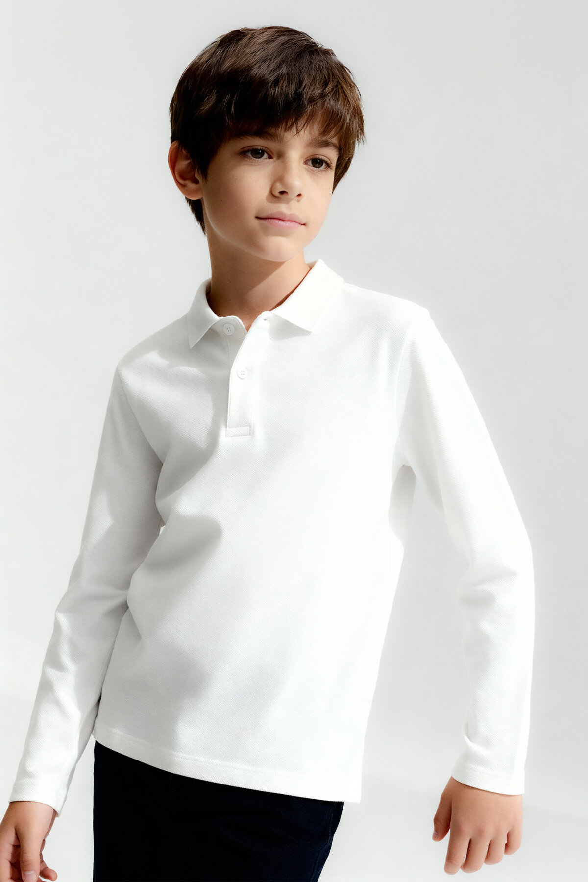 Beyaz Polo Yaka Basic Uzun Kollu Unisex Çocuk T-Shirt - 11170