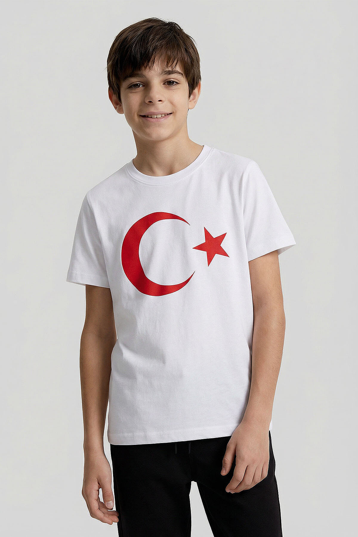 Beyaz Ay Yıldız Baskılı Unisex T-Shirt - 11333