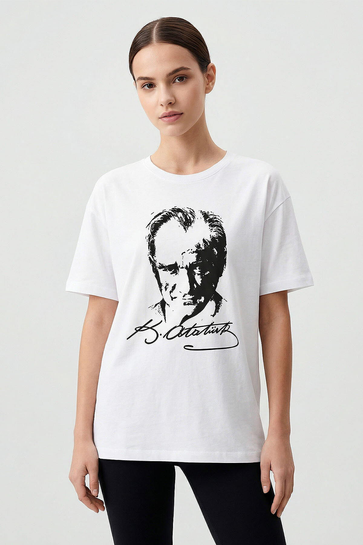 Beyaz Ay Yıldız Baskılı Unisex T-Shirt - 88510