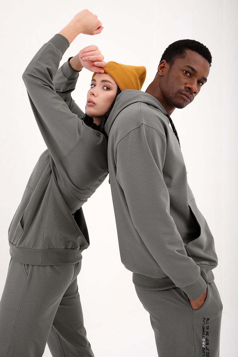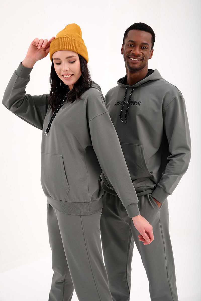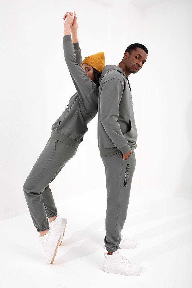 Ürün Adı : Çağla Kapüşonlu Kanguru Cep Oversize Lastik Paça Sevgili Kombini