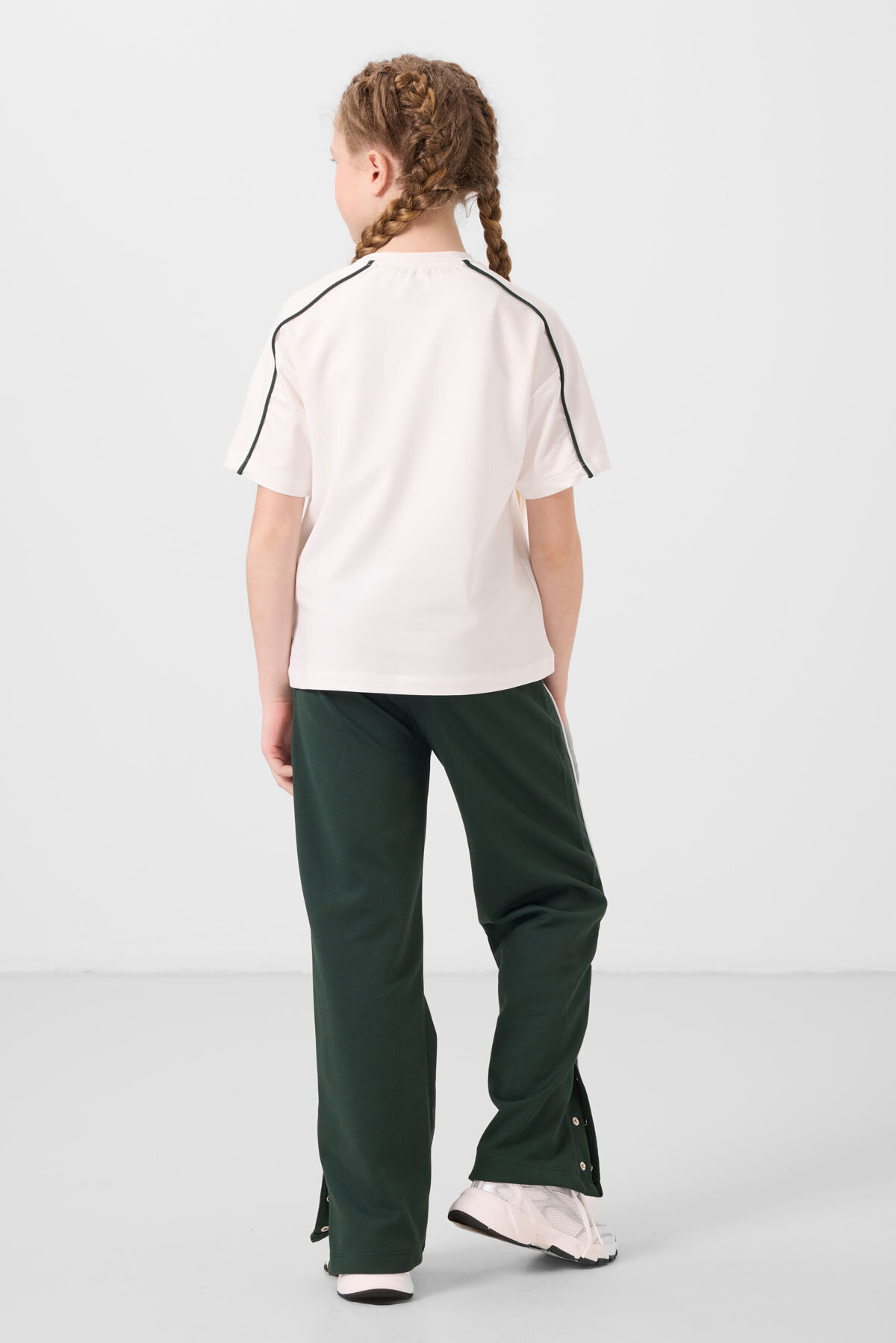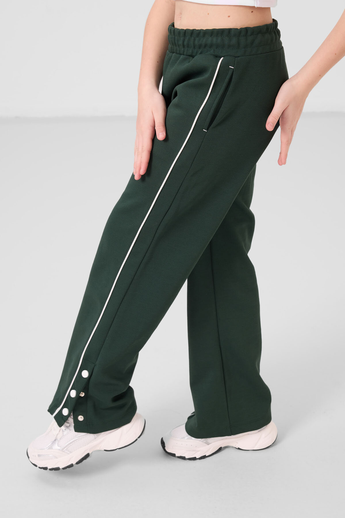 Çam Yeşili Geniş Paça Çıt Çıt Detaylı Kız Çocuk Palazzo Pantolon - 75199