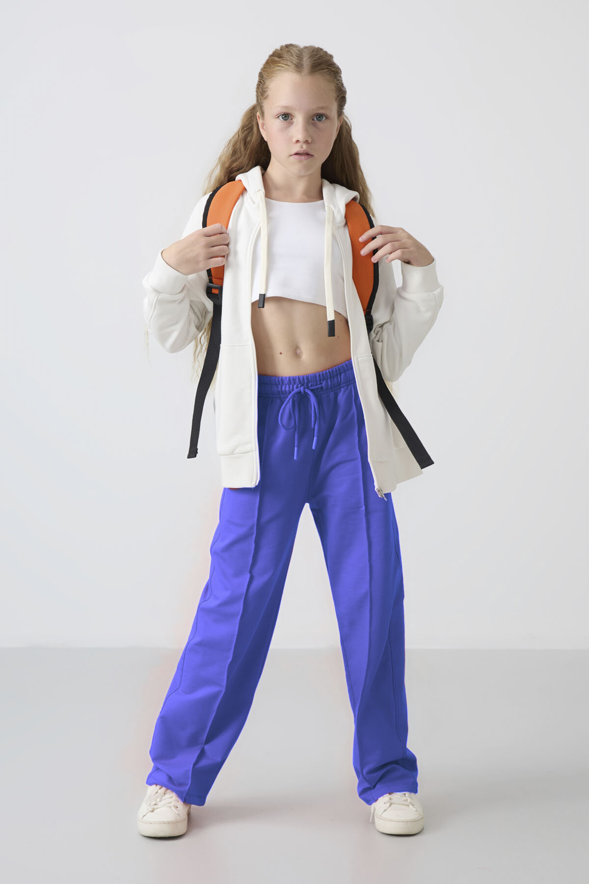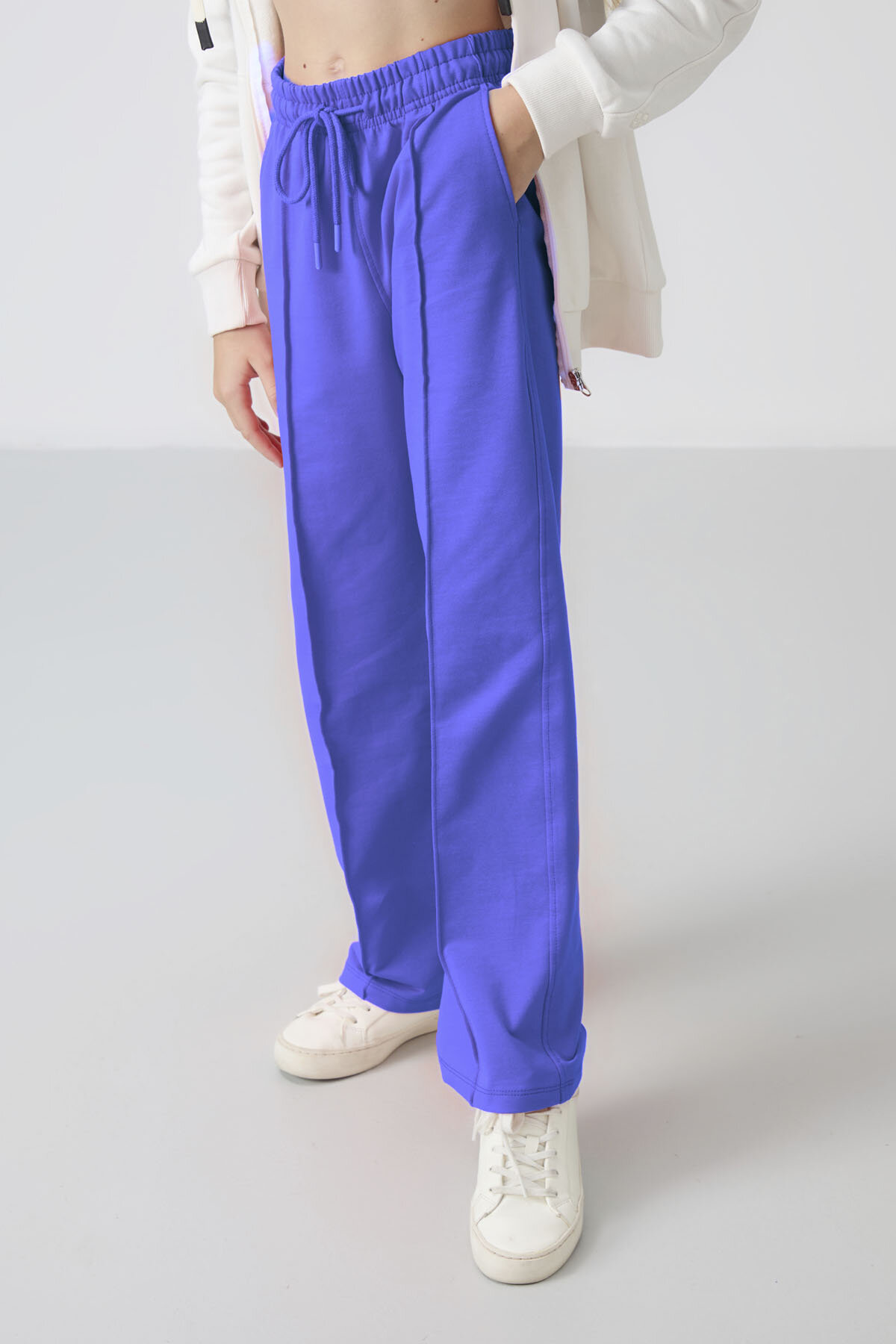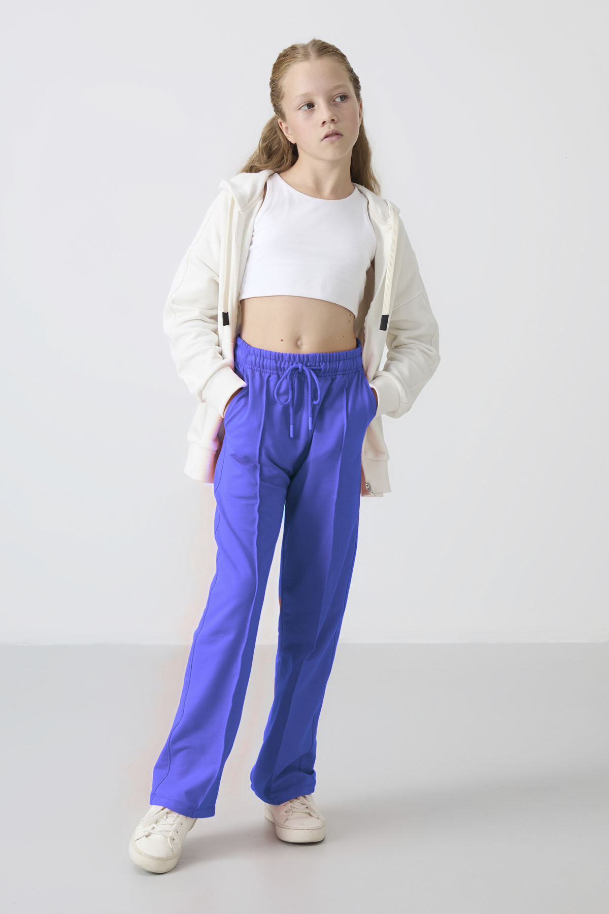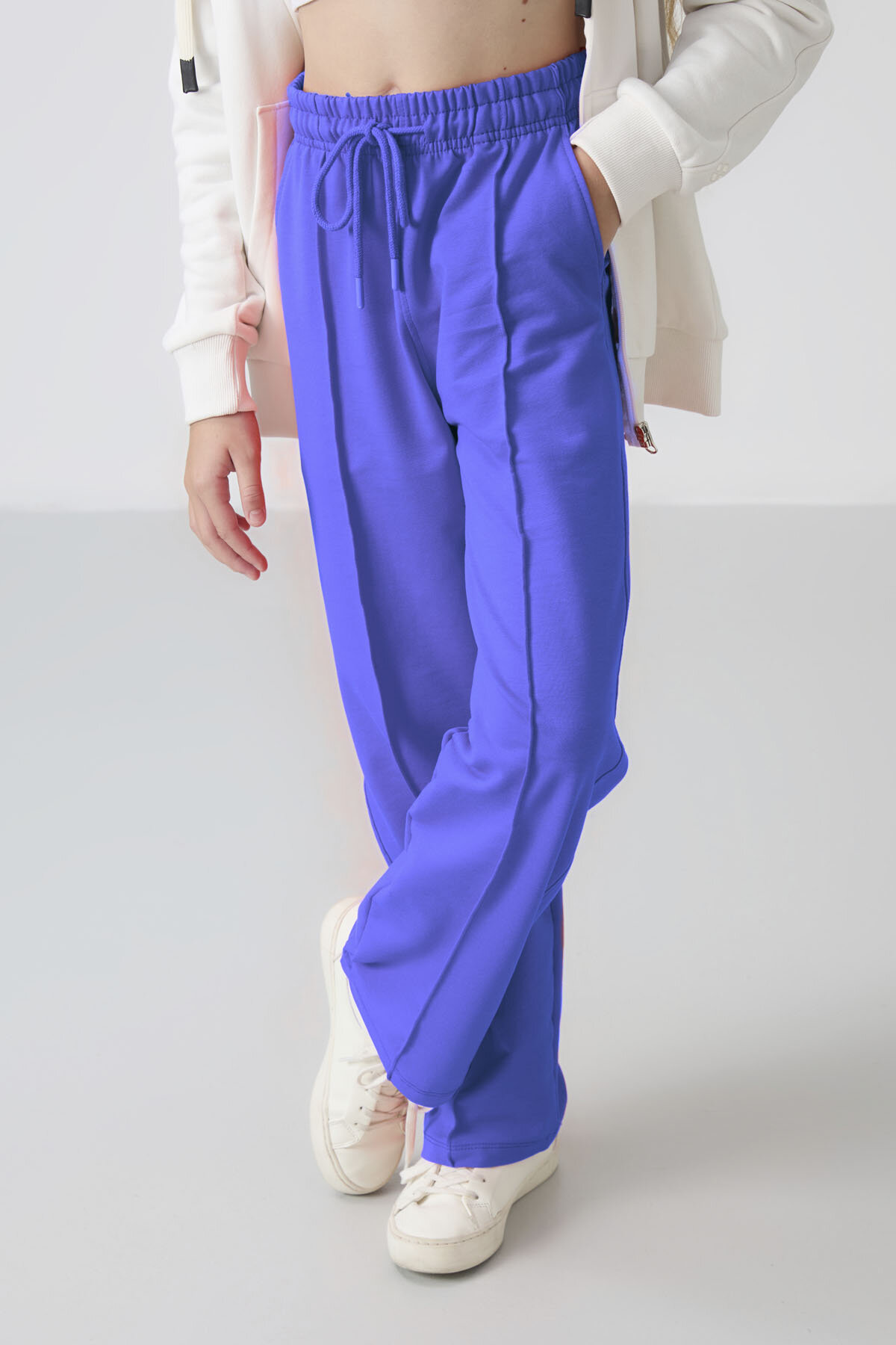 Eflatun Cepli Ön Dikiş Detaylı Geniş Paça Kız Çocuk Eşofman Altı -75144