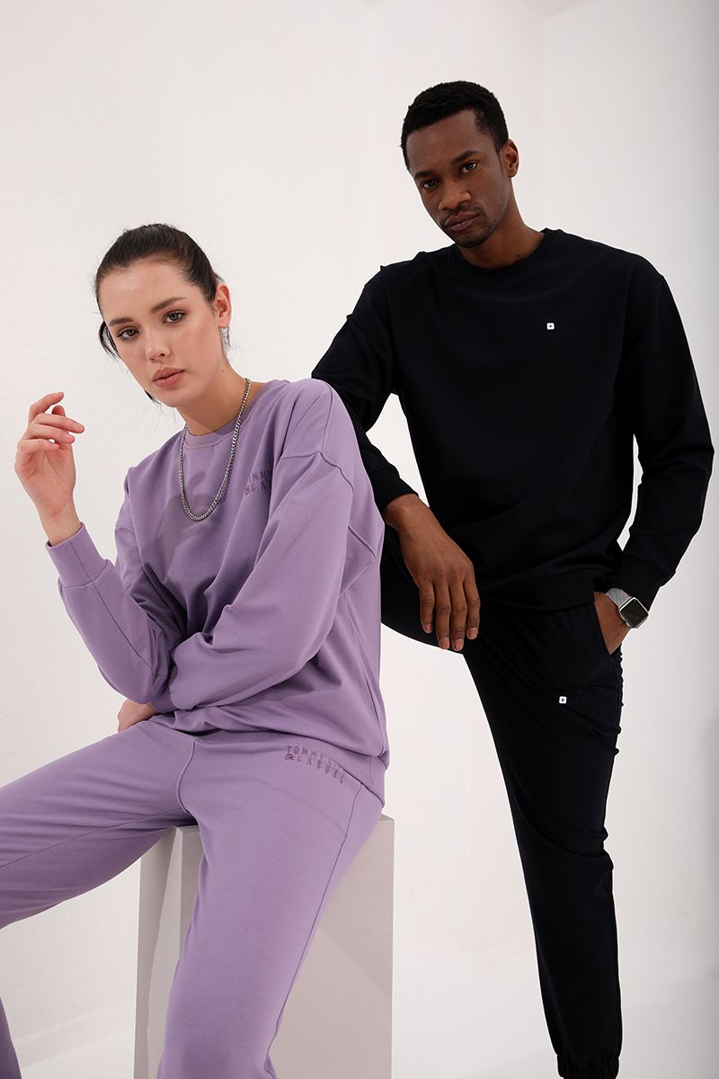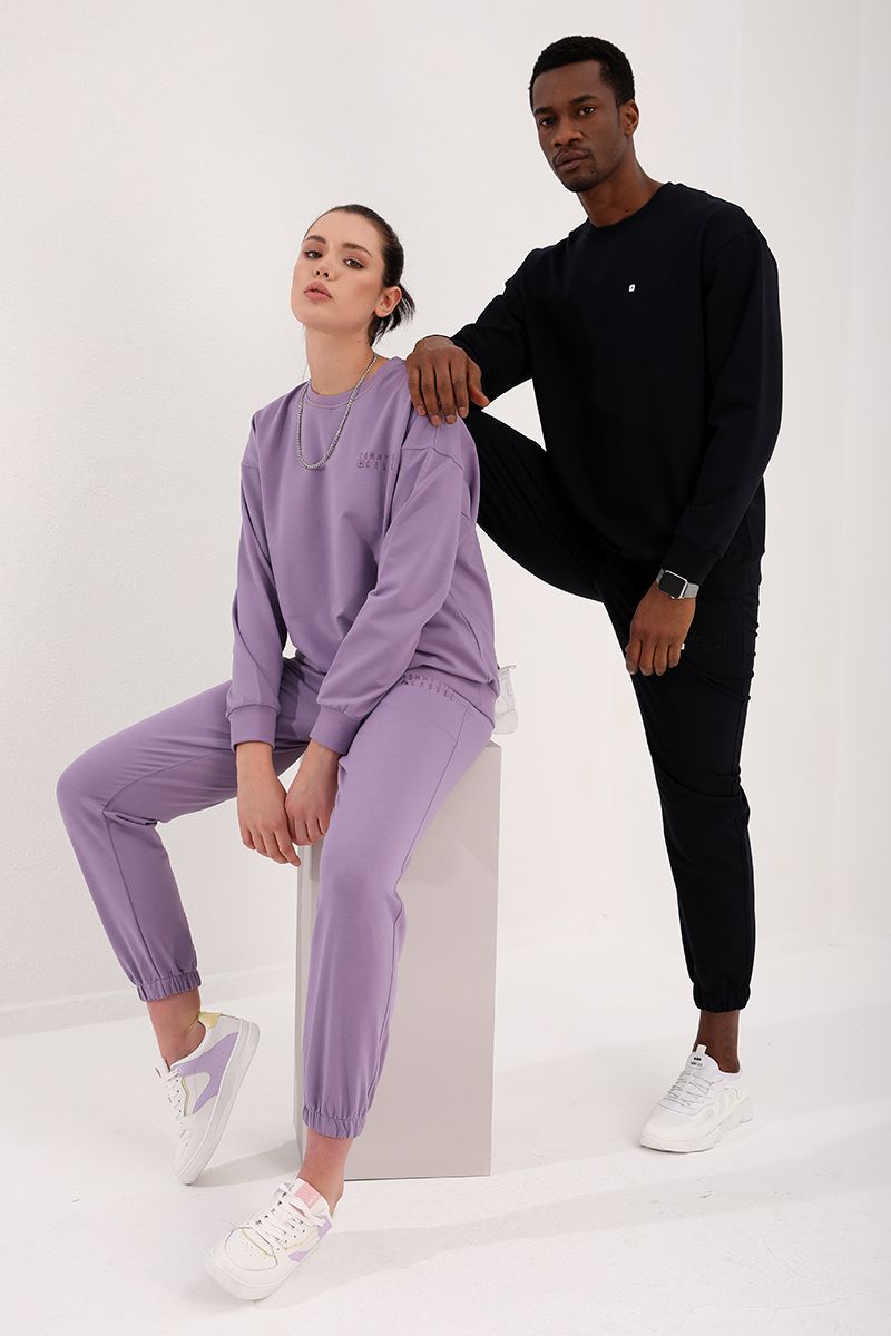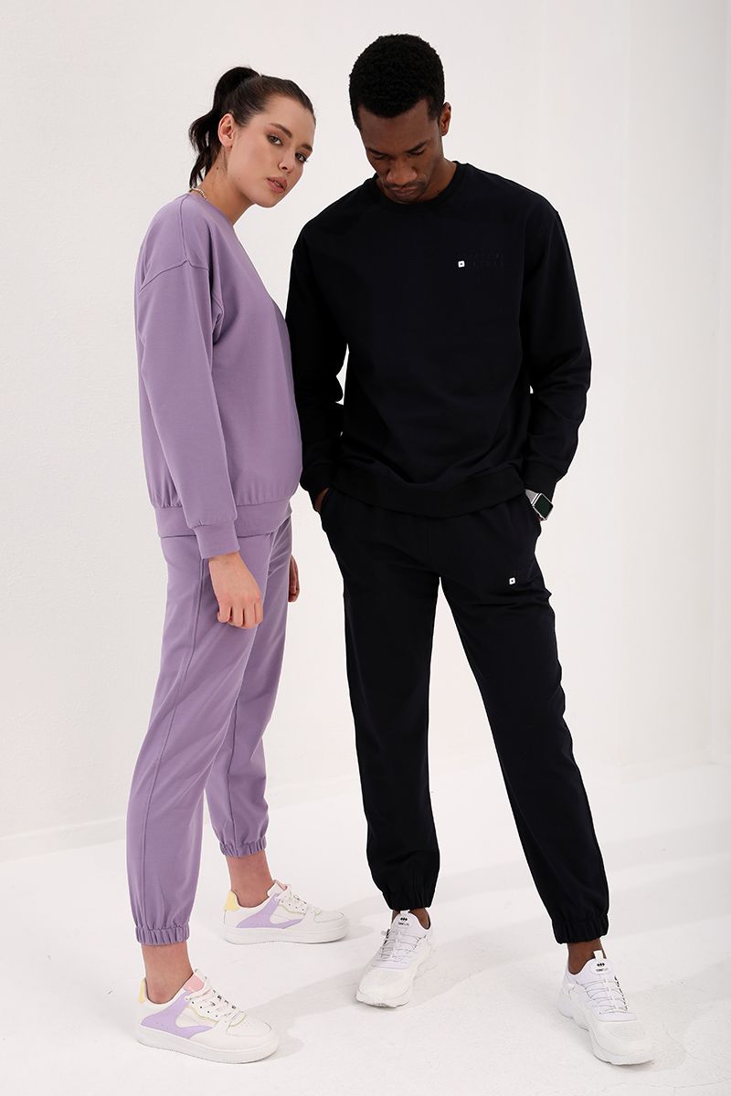 Ürün Adı : Eflatun-Siyah Casual O Yaka Oversize Lastik Paça Sevgili Kombini