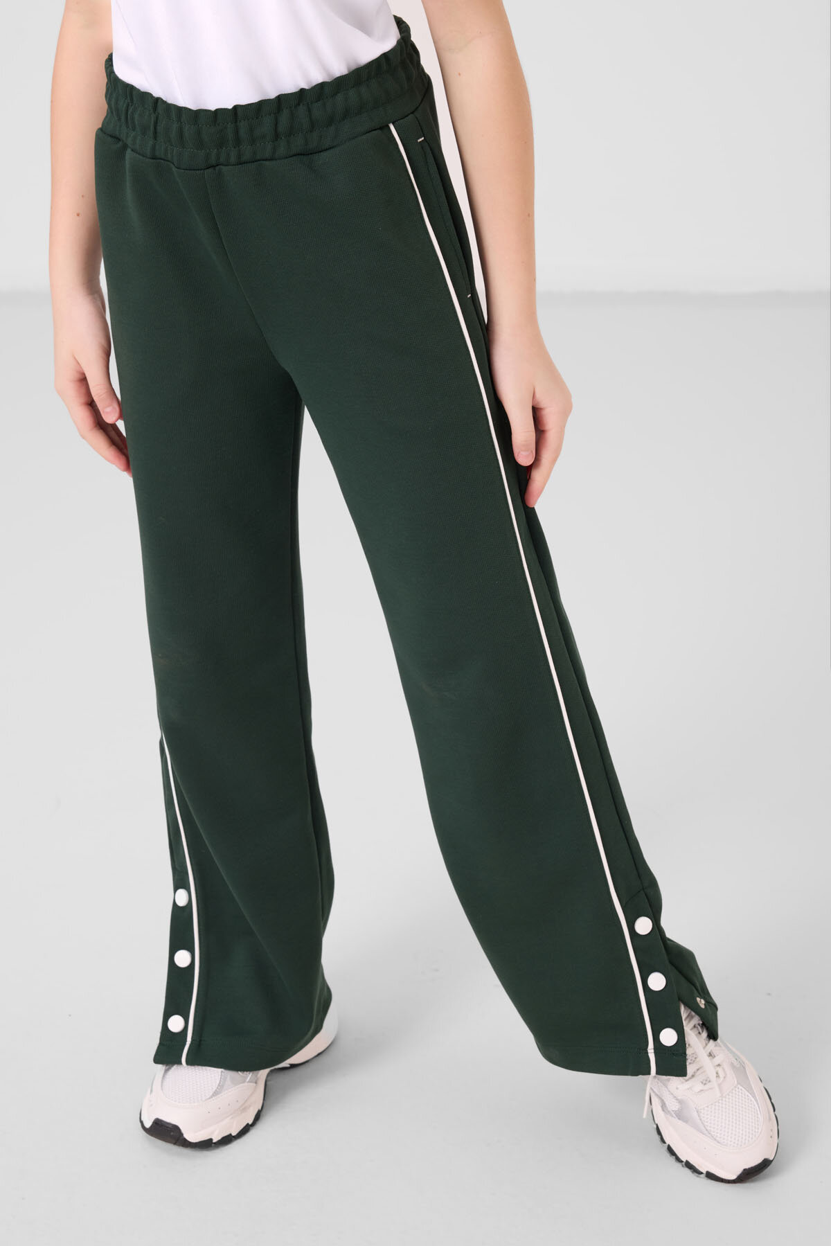 Ekru-Çam Yeşil O Yaka Baskılı Geniş Paça Çıt Çıt Detaylı Kız Çocuk Palazzo Eşofman Takım - 75172