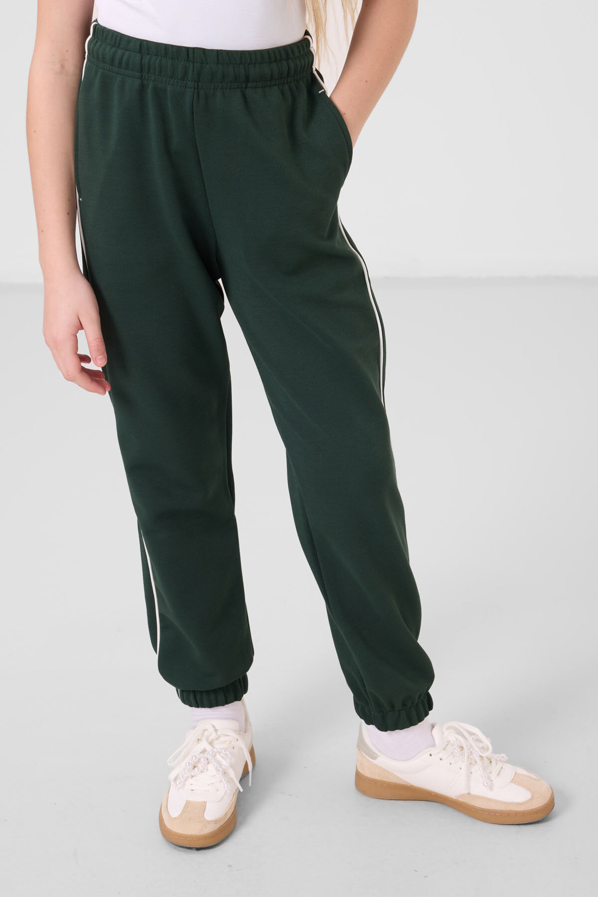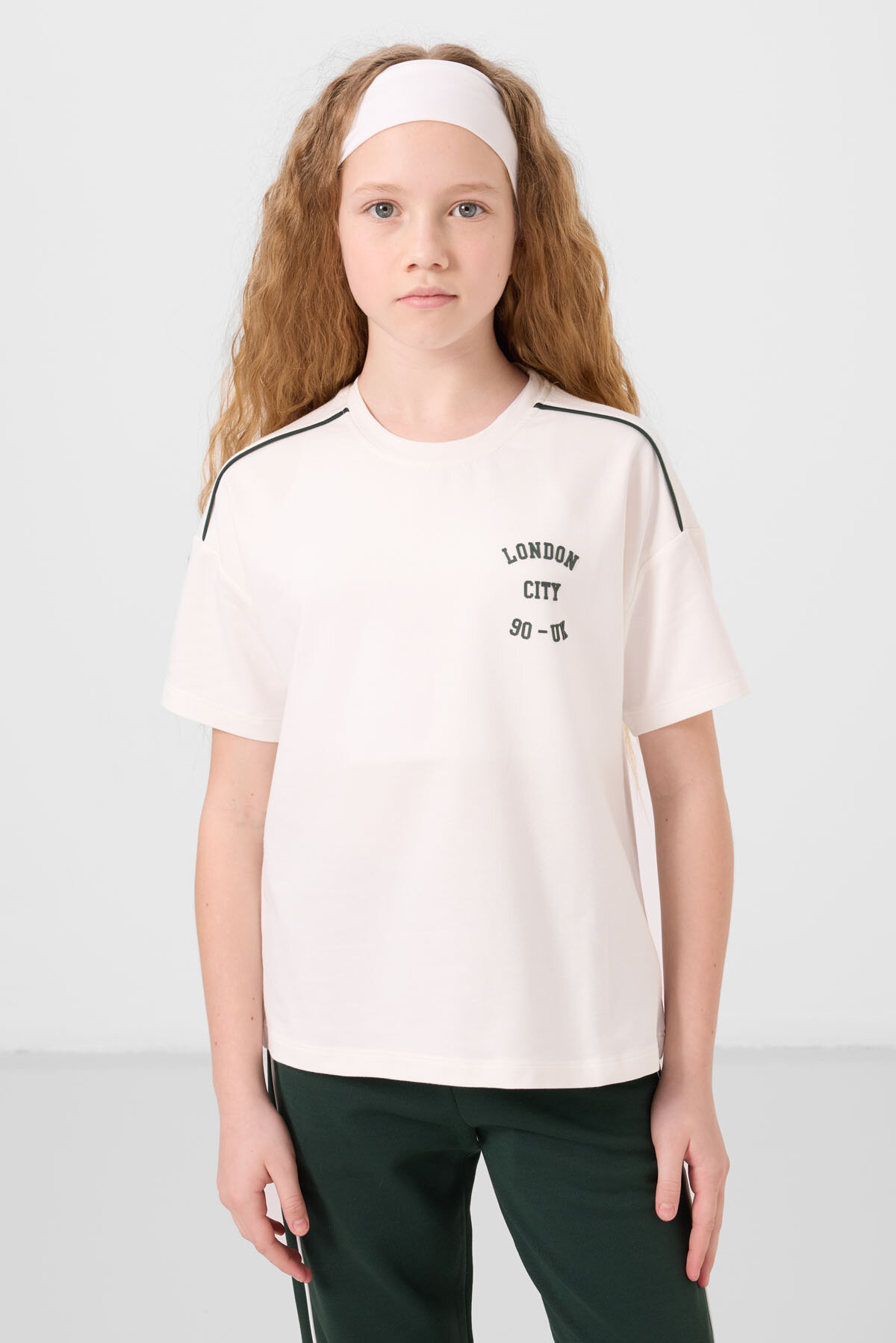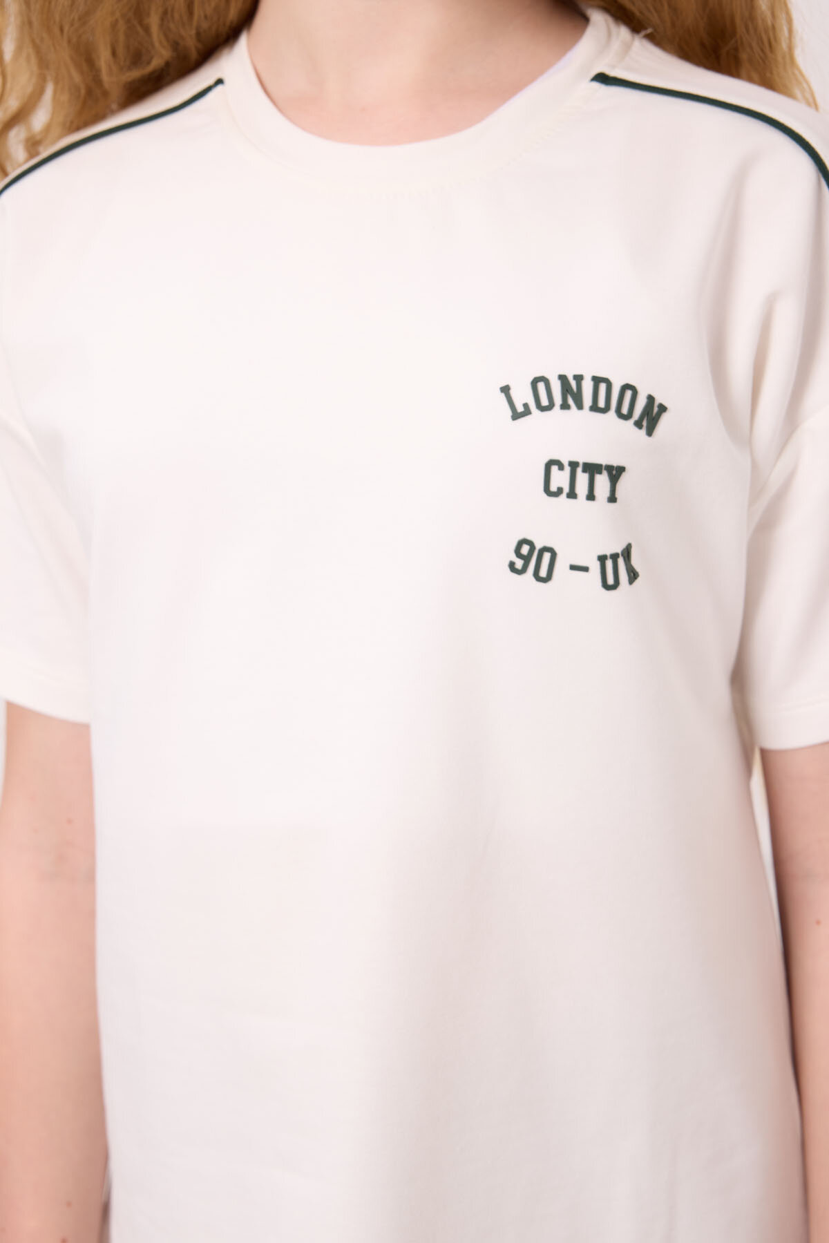 Ekru-Çam Yeşil O Yaka Baskılı Lastik Paçalı Standart Fit Kız Çocuk Eşofman Takım - 75186