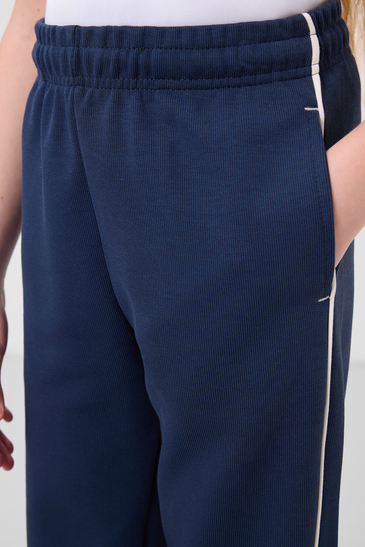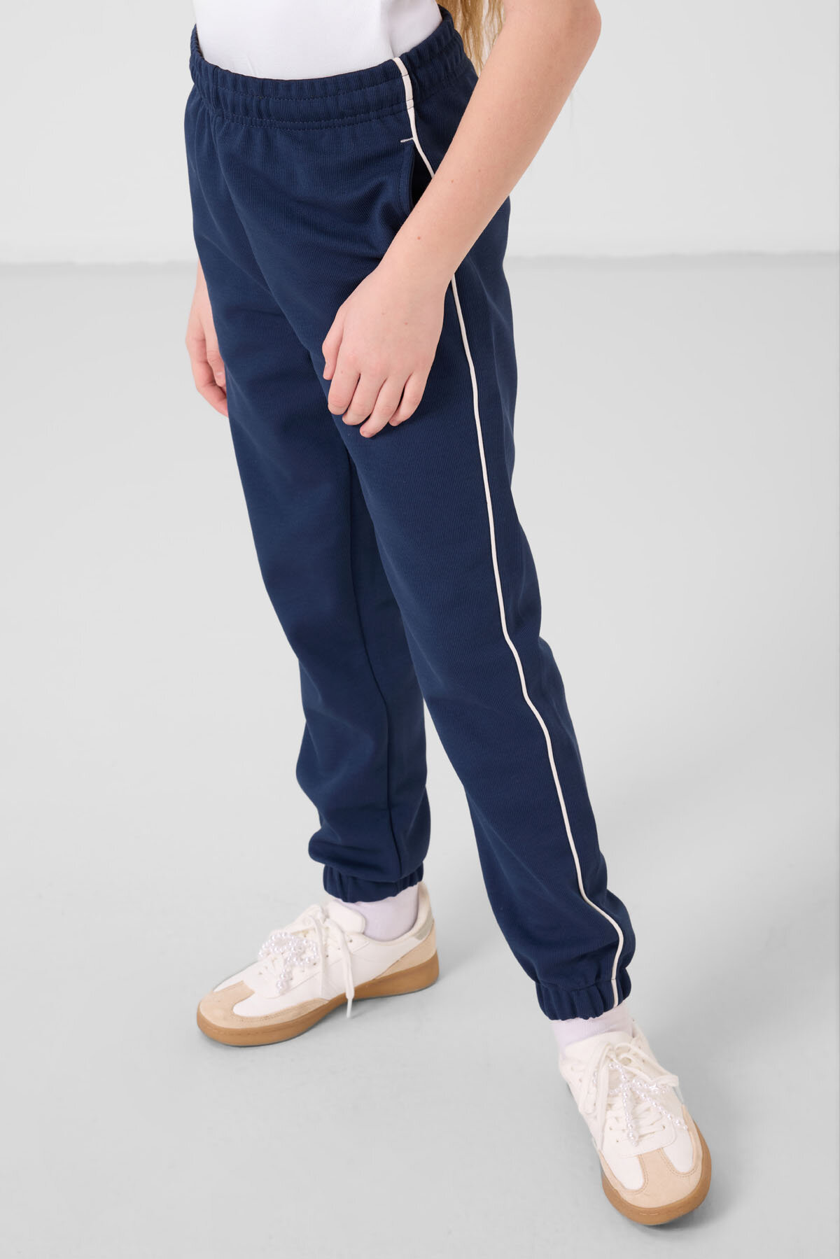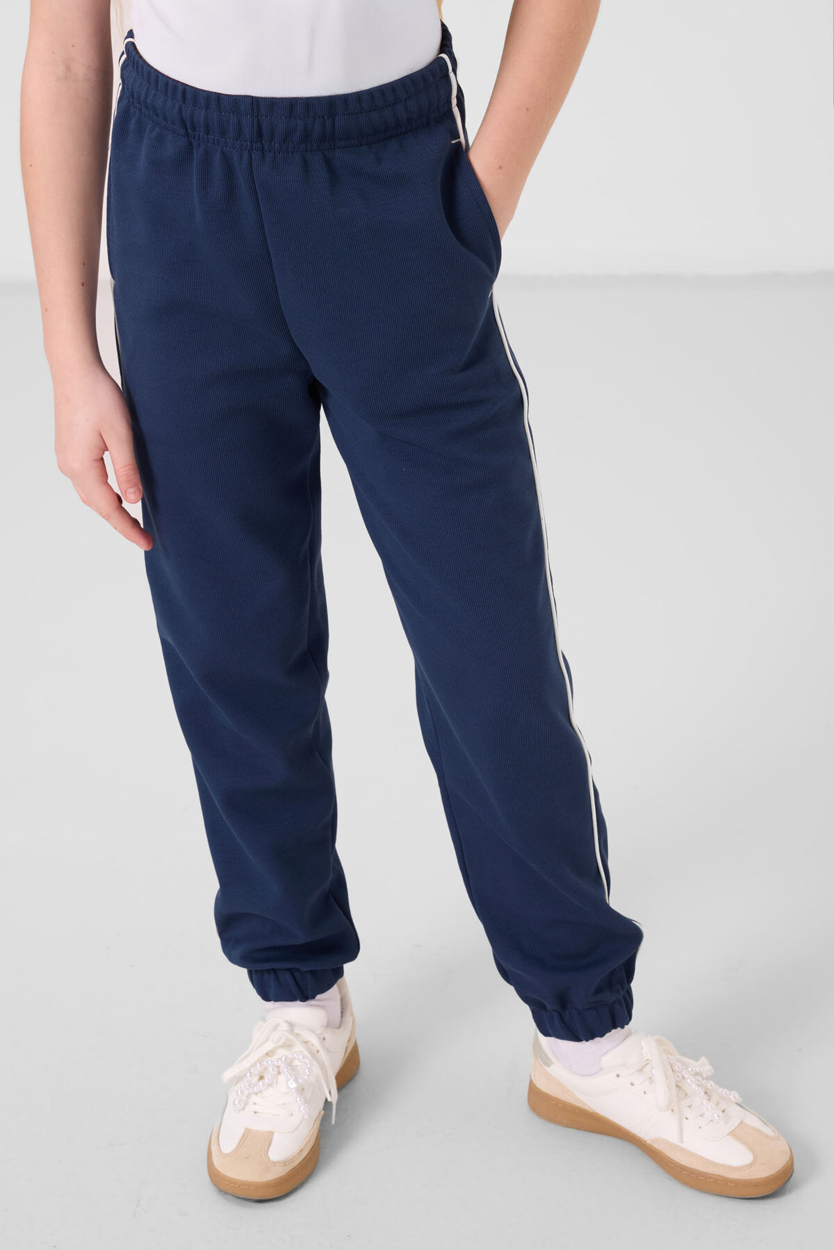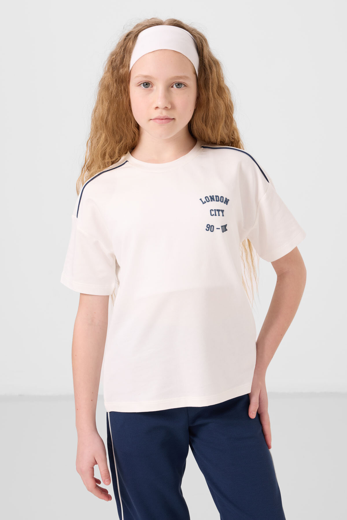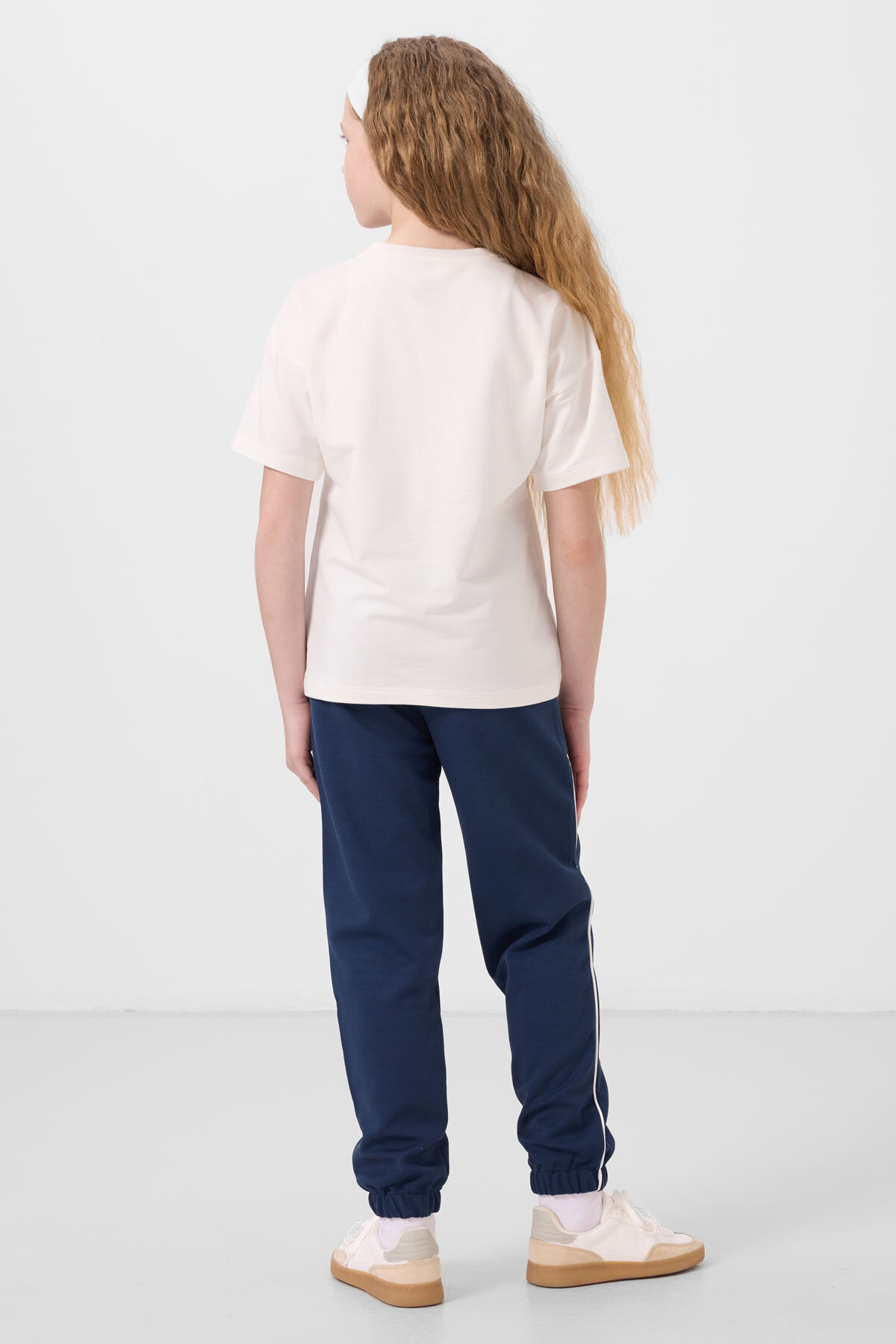 Ekru-Parlament O Yaka Baskılı Lastik Paçalı Standart Fit Kız Çocuk Eşofman Takım - 75186