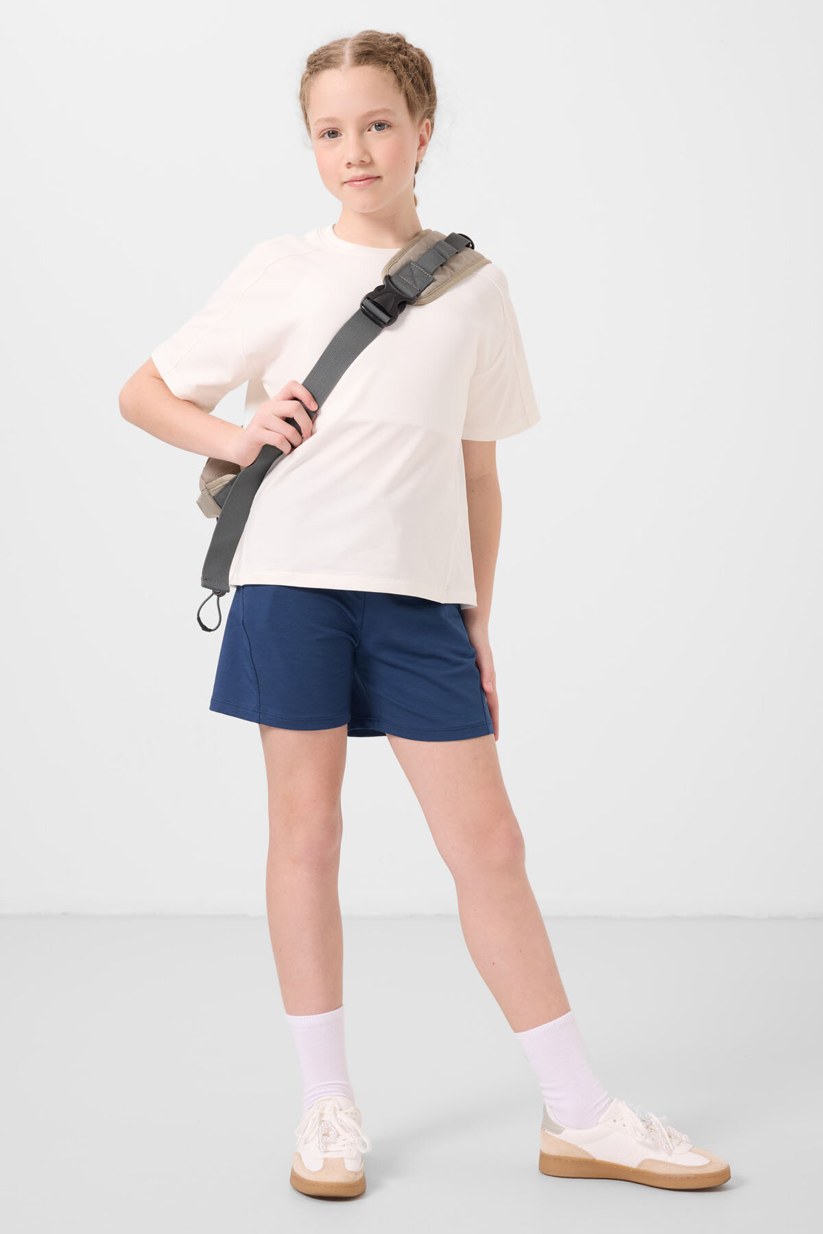 Ekru-Parlament Pamuklu Yumuşak Dokulu Standart Fit Basic Kız Çocuk Şort Takım - 75184