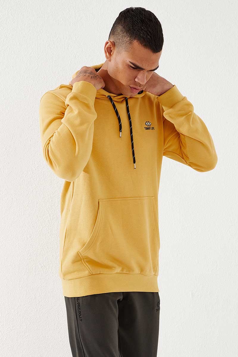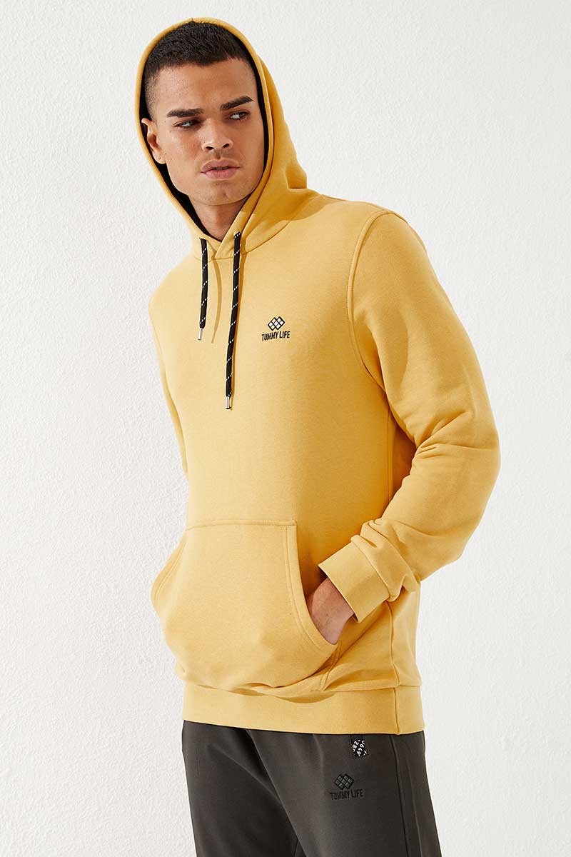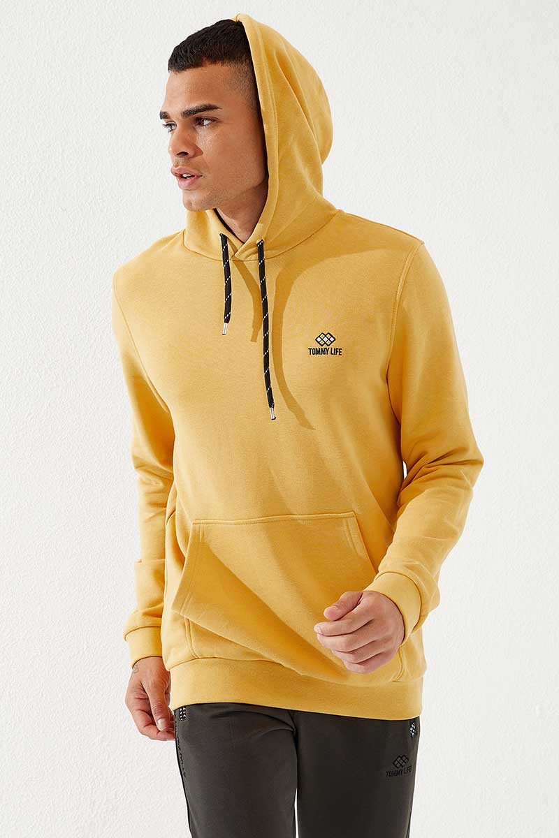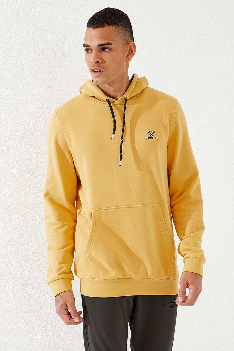 Hooded Kangaroo Pocket Mustard Men's Sweatshirt