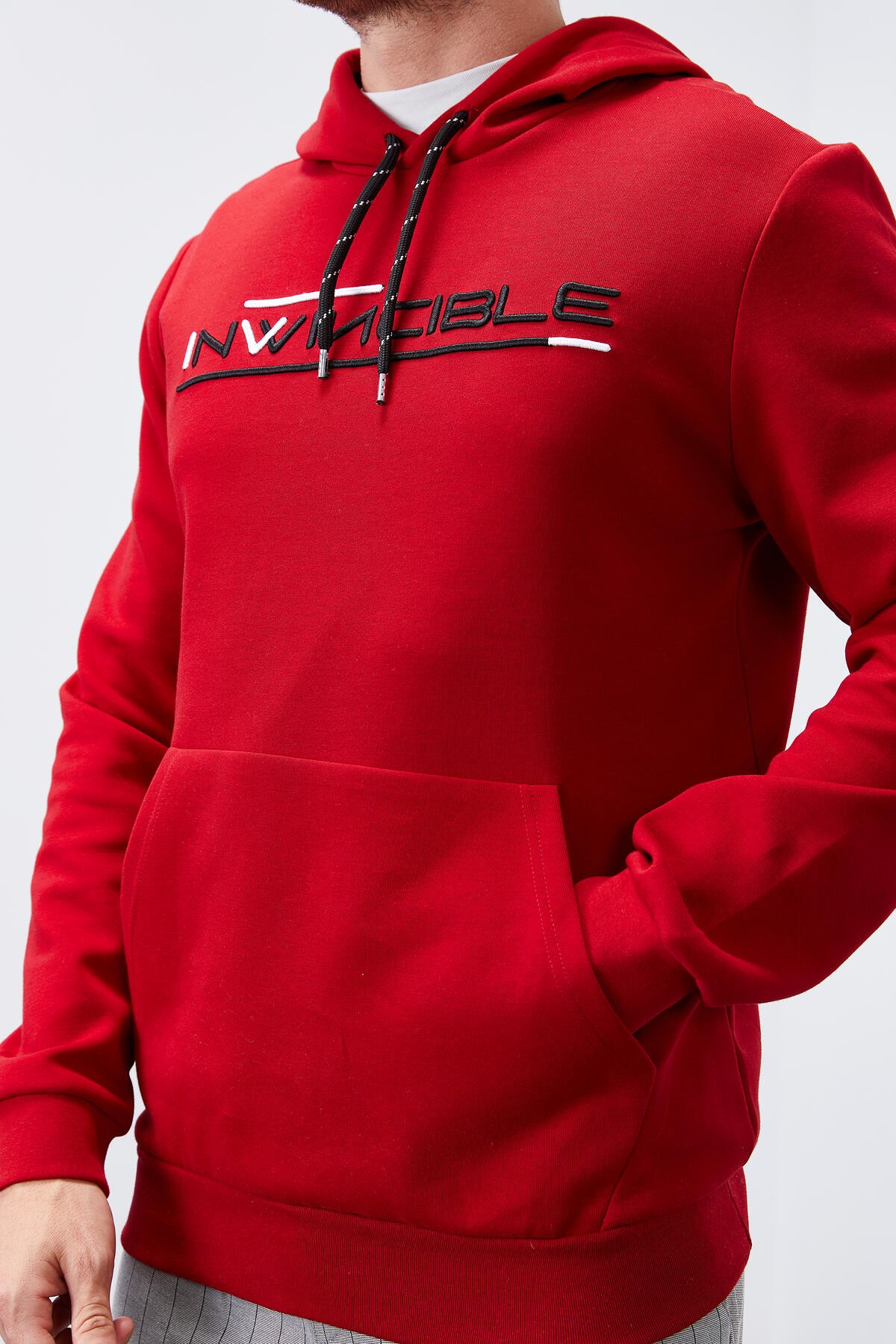 Invincible Embroidered Kangaroo Pocket Red Men's Sweatshirt