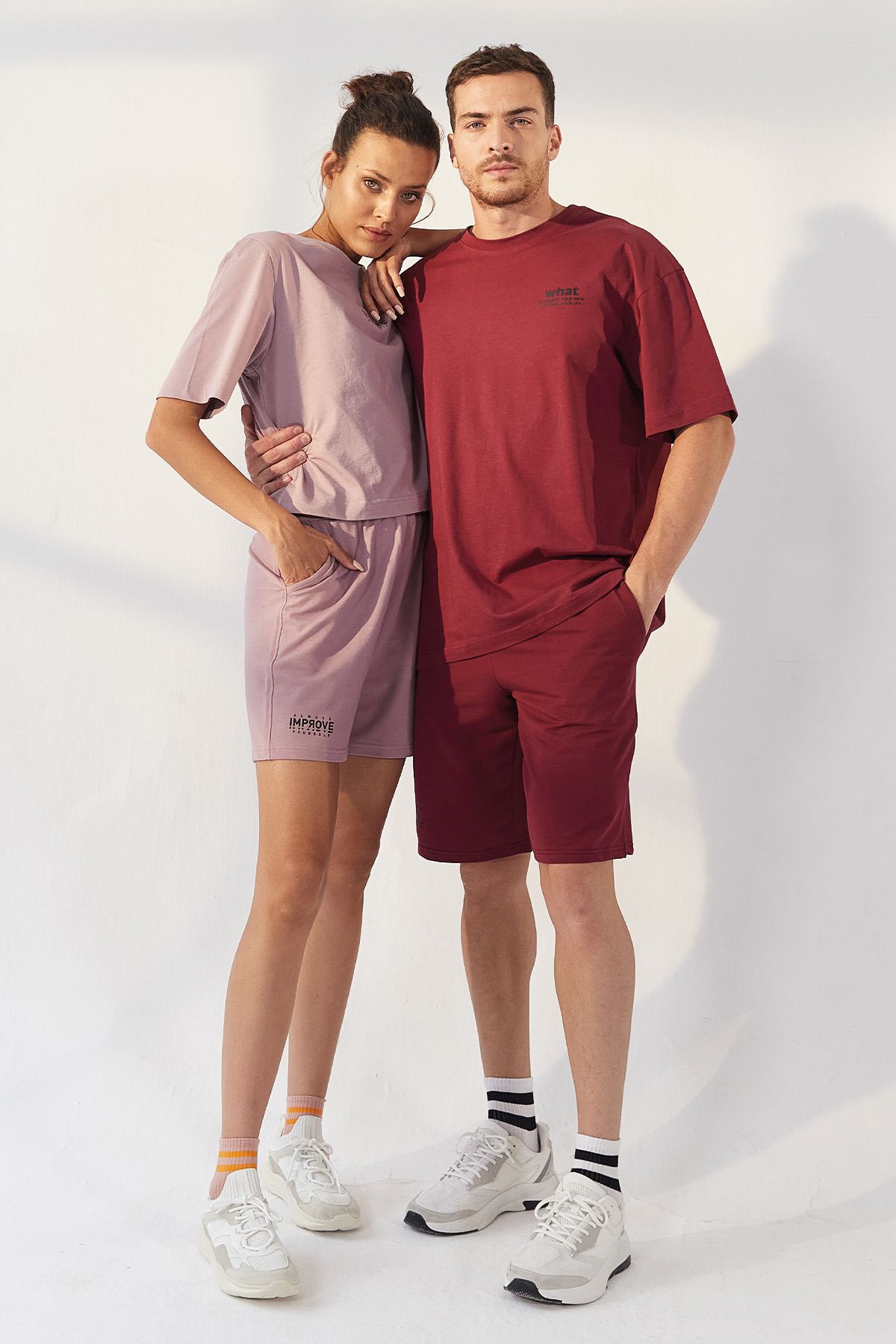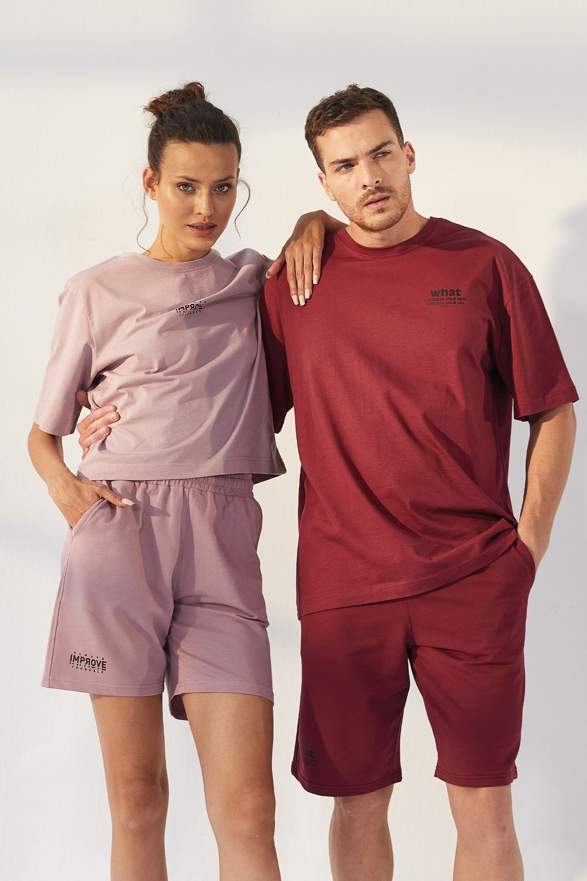Ürün Kodu : 95292_541 - 85156_542Ürün Adı : Erguvan - Gül Kurusu Küçük Yazı Baskılı O Yaka Oversize Bermuda Şort Takım Sevgili KombiniModelin Ölçüleri : Erkek - Boy : 1,85 Cm / Göğüs : 98 Cm / Bel : 80 Cm - M/38 / Kadın - Boy : 1.79 Cm / Göğüs : 86 Cm / Bel : 62 Cm / Kalça : 90 Cm - S/36Numune Bedeni : Erkek - M/38 Kadın - S/36Kumaş Bilgisi : %80 Pamuk %15 Polyester %5 ElastanMevsimi : YazÜrün Kalıp Bilgisi : OversizeÜrün Ölçüleri : Erkek - Alt: Yan Boy Kemer Dahil S Beden: 54 Cm / Bel: 35 Cm / Basen: 53,5 Cm - Üst: Omuzdan Boy: 72,5 Cm / Göğüs: 57 Cm / Kadın - Alt: Yan Boy Kemer Dahil S Beden: 43,5 Cm / Bel: 34 Cm / Basen: 52 CmPaket/Ürün İçeriği : Şort Takım