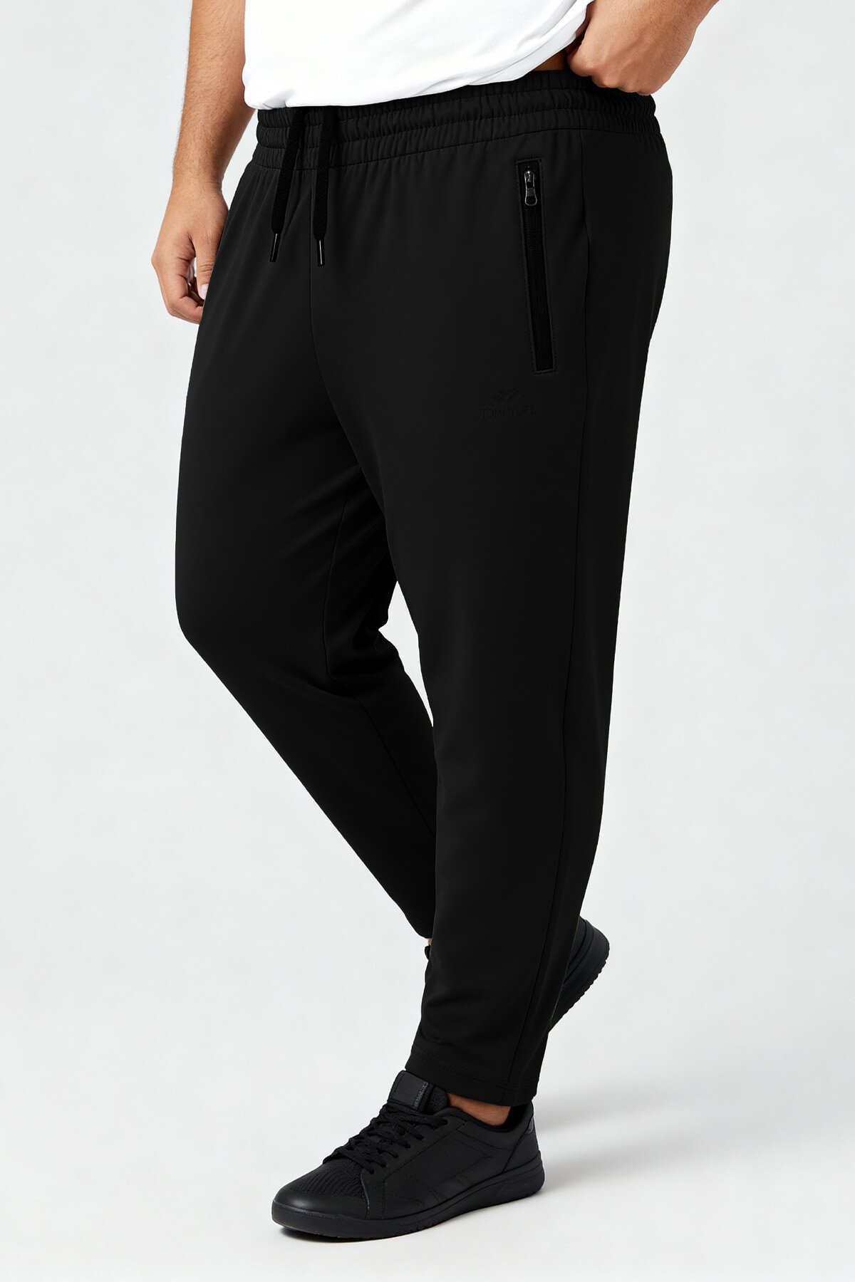 Siyah Fermuarlı Klasik Paça Battal Büyük Beden Erkek Eşofman Altı - 84947