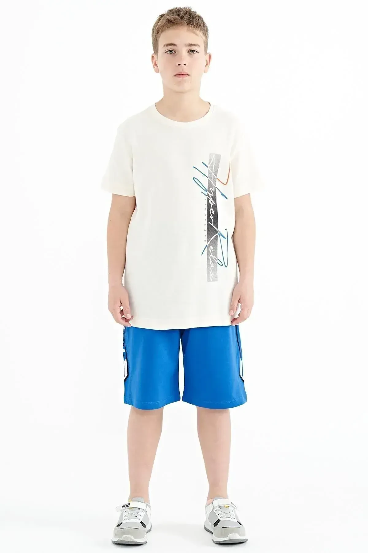 Ekru Yazı Baskılı O Yaka Standart Kalıp Erkek Çocuk T-Shirt - 11119