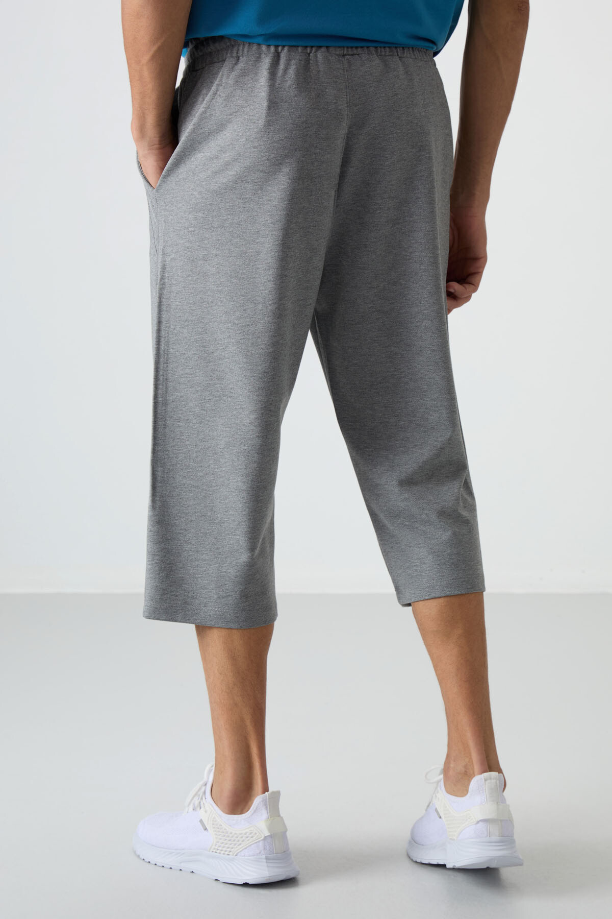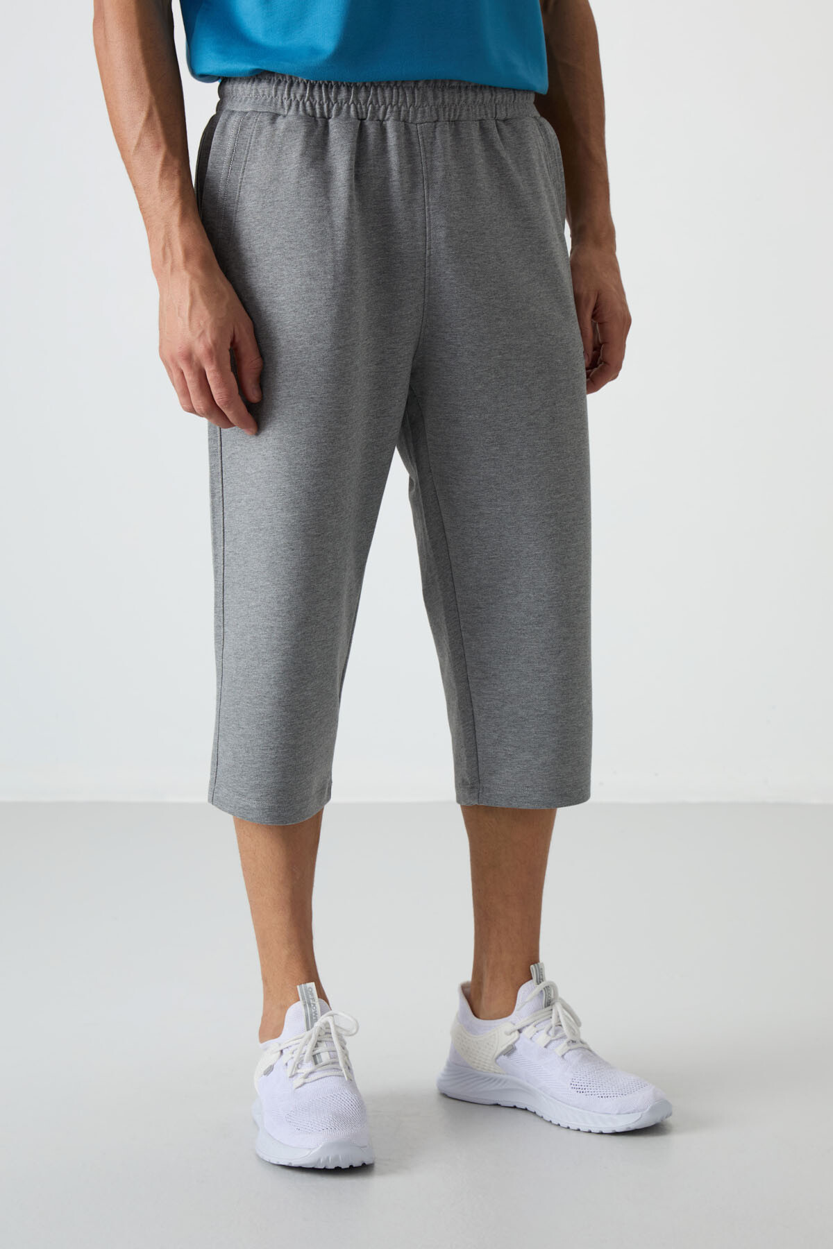 Gri Melanj Pamuklu Yumuşak Dokulu Standart Fit Nakışlı Erkek Kapri - 83102