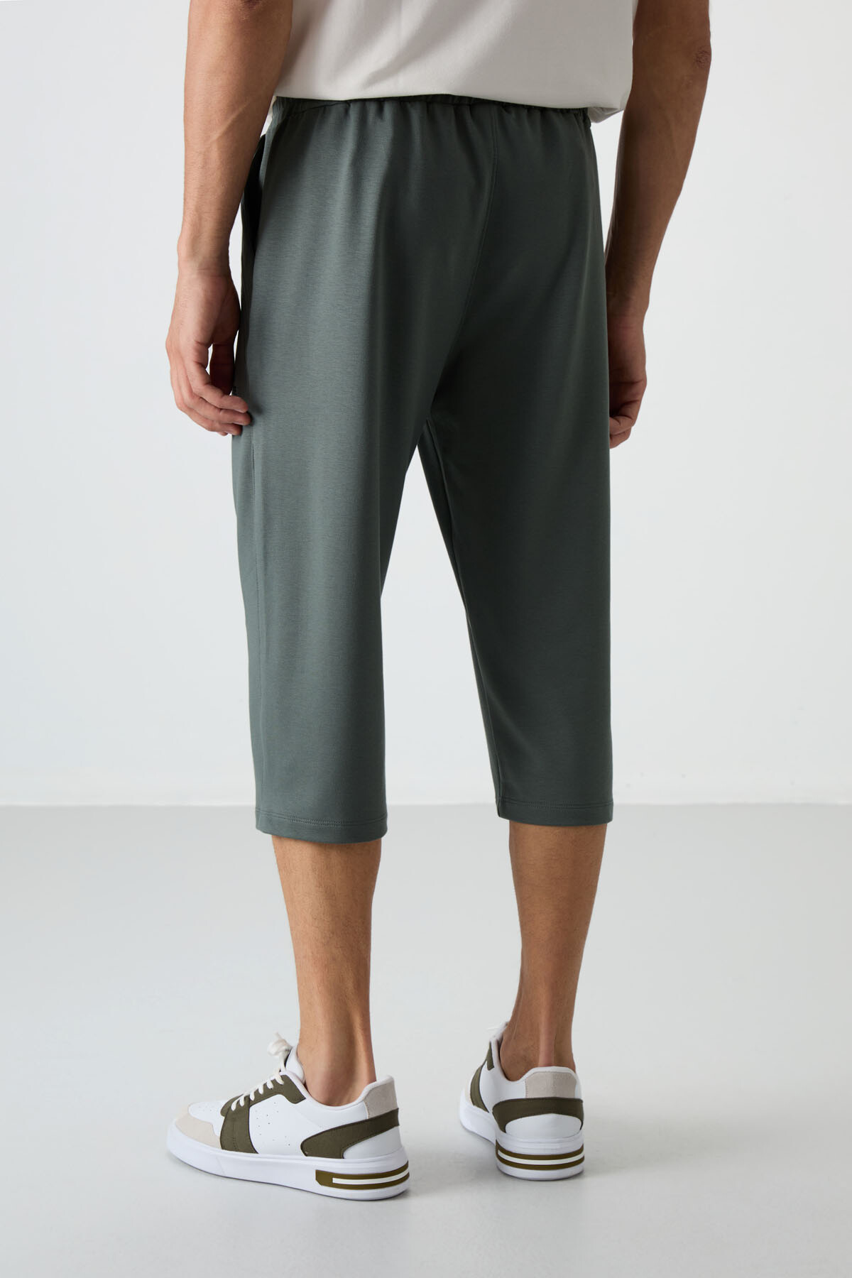 Haki Pamuklu Yumuşak Dokulu Standart Fit Nakışlı Erkek Kapri - 83102