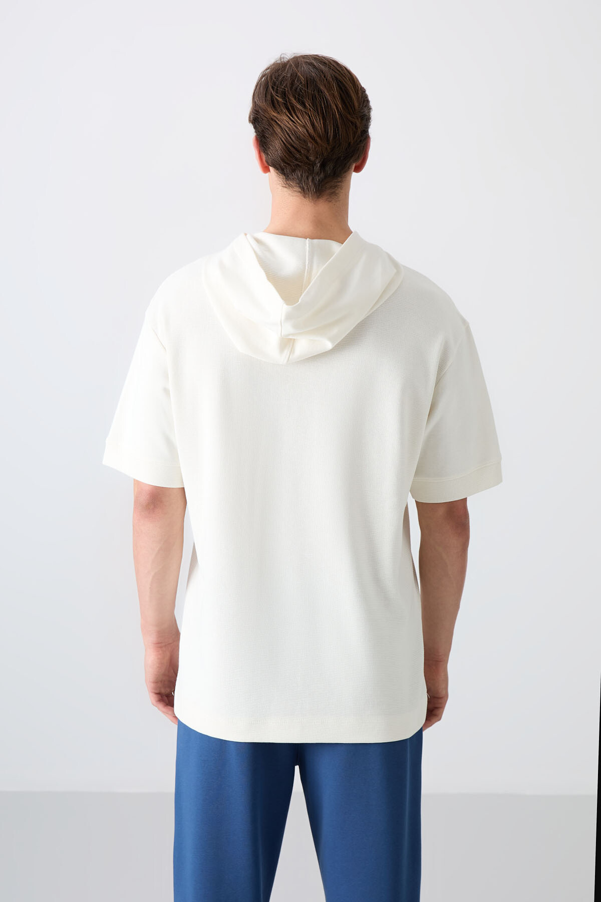 Ekru Pamuklu Kalın Yüzeyi Dokulu Oversize Fit Basic Erkek T-Shirt - 88335