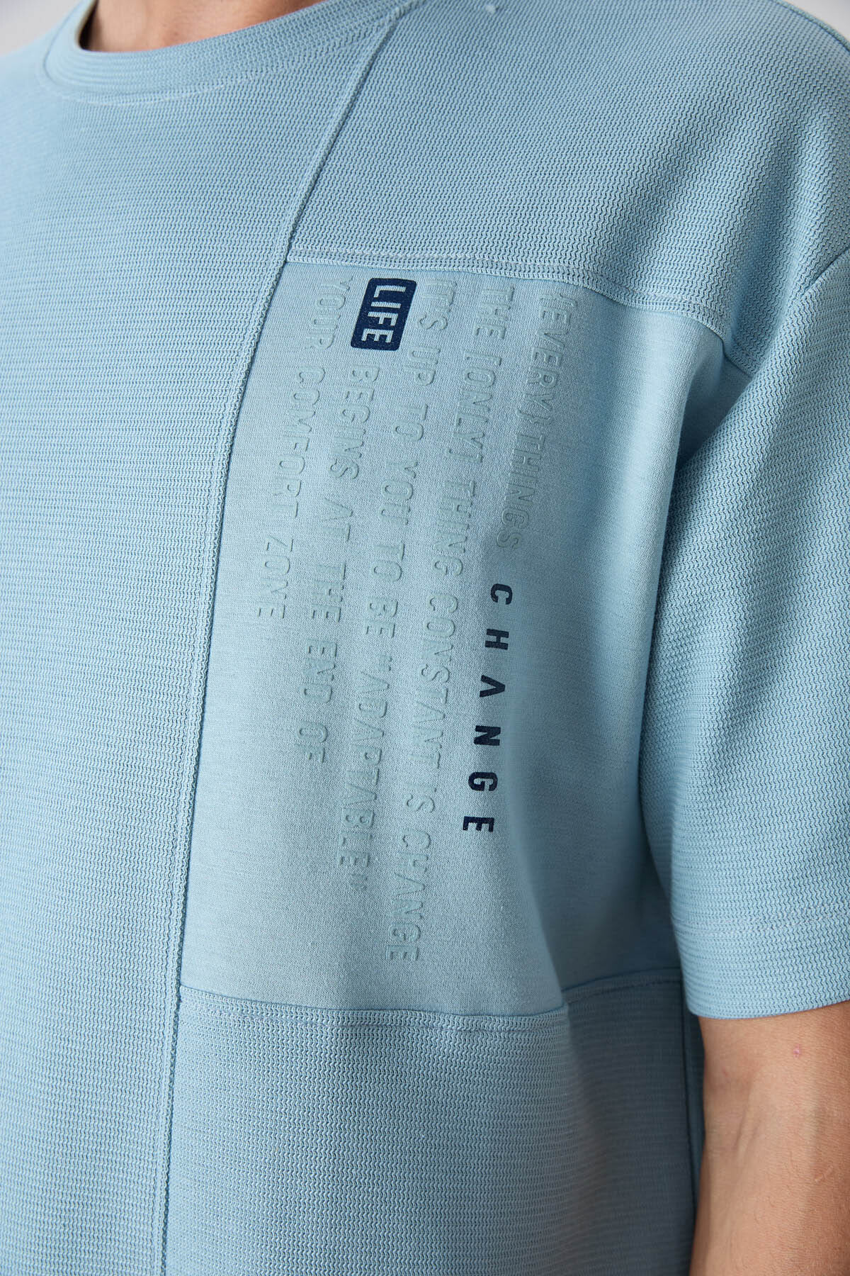 Açık Mavi Pamuklu Kalın Yüzeyi Dokulu Oversize Fit Baskılı Erkek T-Shirt - 88338