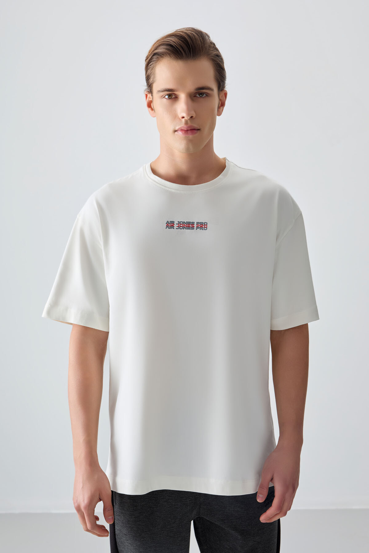 Ekru %100 Pamuk Kalın Yumuşak Dokulu Oversize Fit Baskılı Erkek T-Shirt - 88354