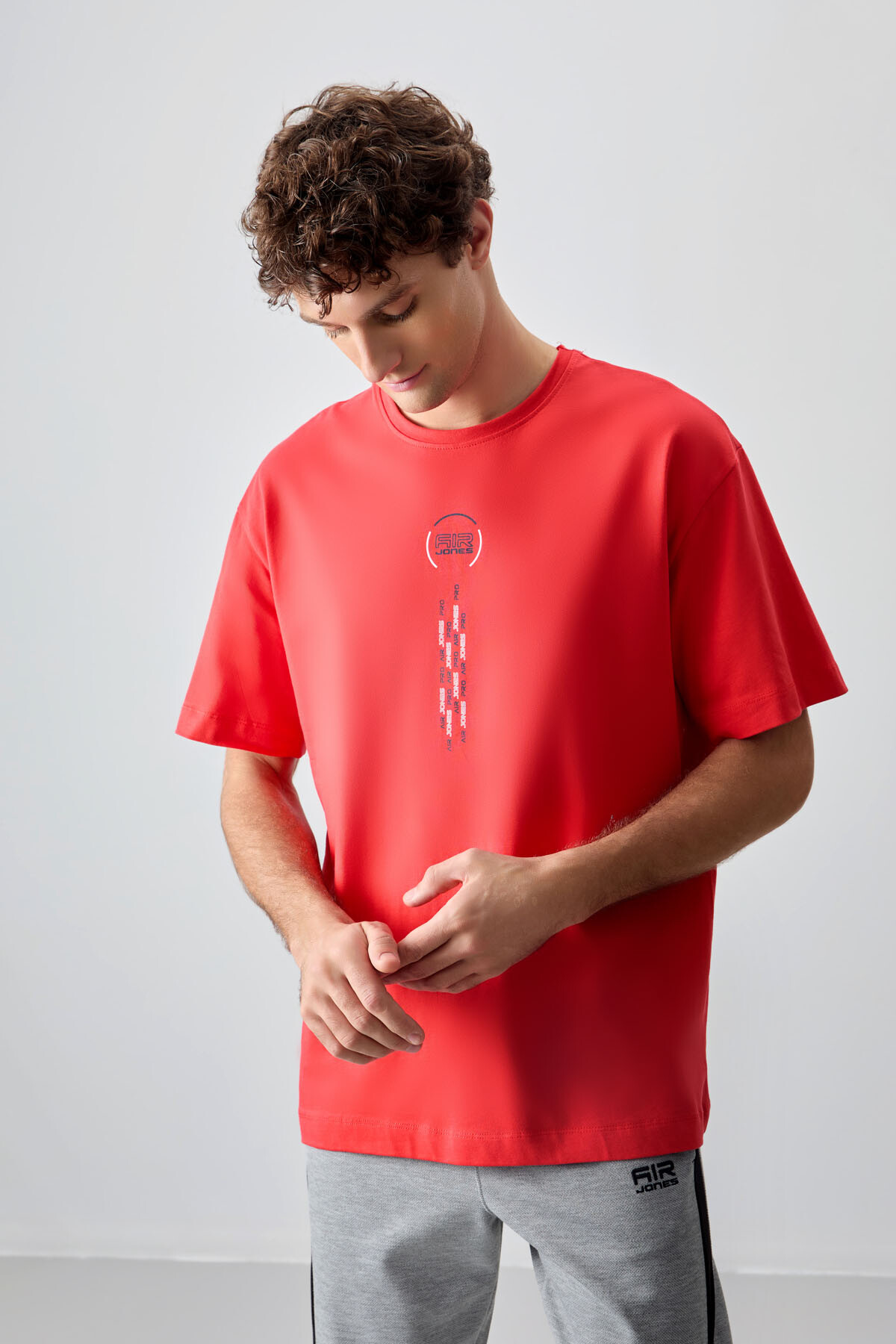 Fiesta %100 Pamuk Kalın Yumuşak Dokulu Oversize Fit Baskılı Erkek T-Shirt - 88355