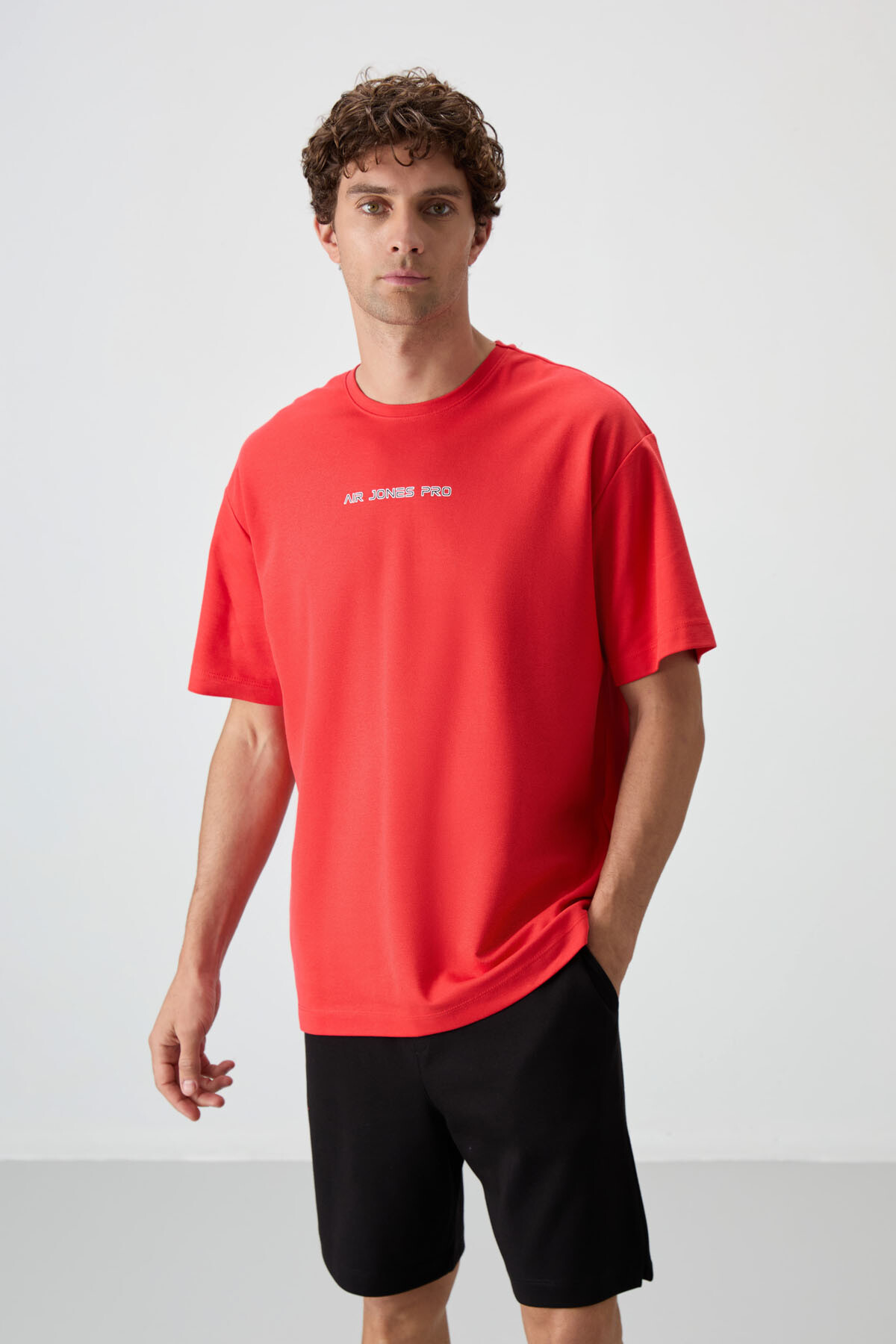 Fiesta Pamuklu Kalın Yüzeyi Dokulu Oversize Fit Baskılı Erkek T-Shirt - 88364
