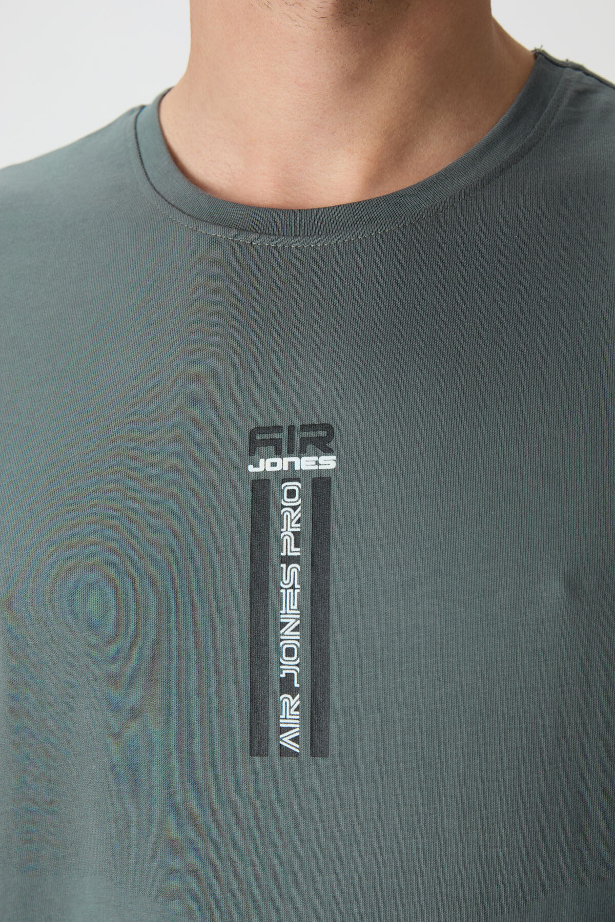 Haki %100 Pamuk Kalın Yumuşak Dokulu Oversize Fit Baskılı Erkek T-Shirt - 88360