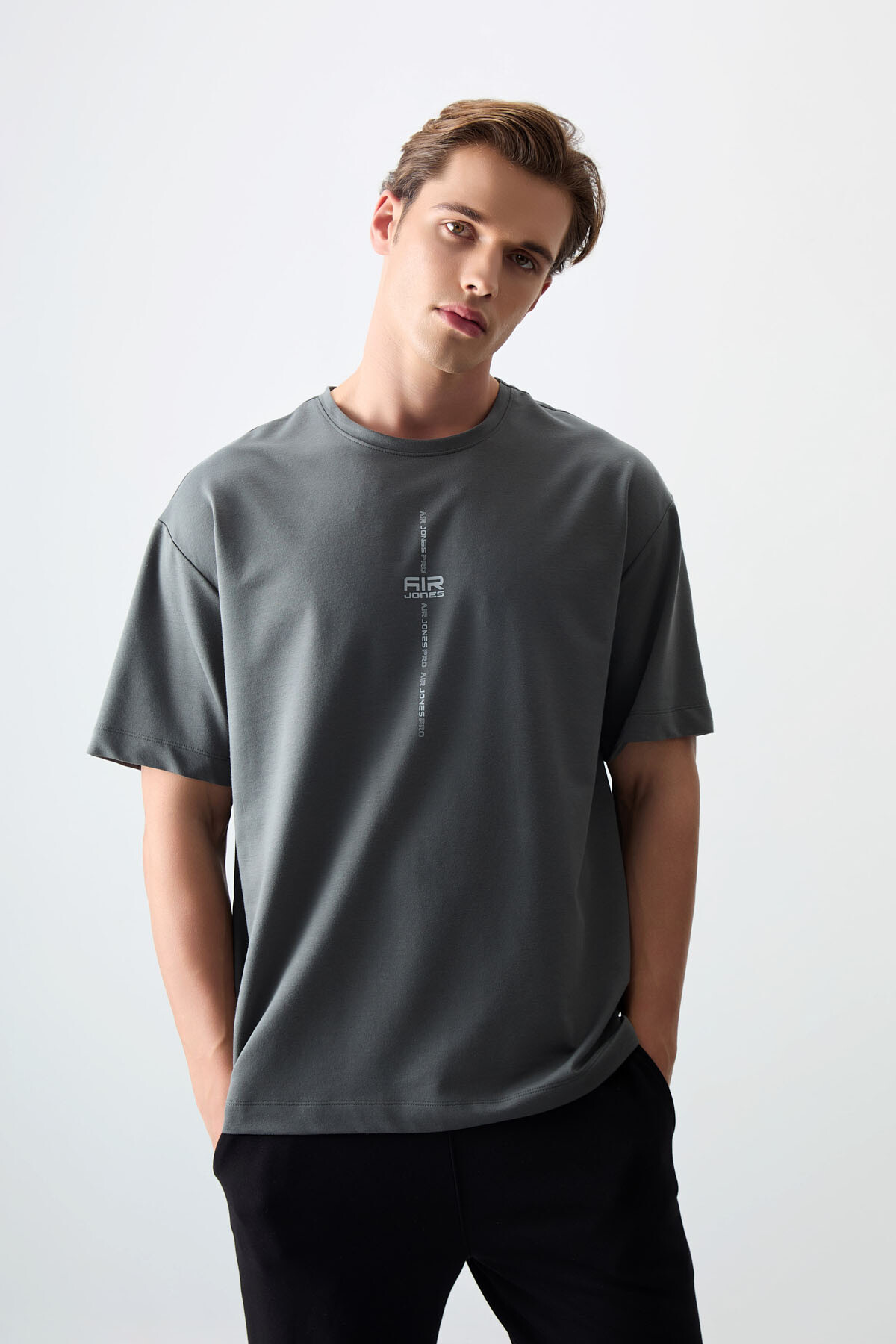 Fiesta Pamuklu Kalın Yumuşak Dokulu Oversize Fit Baskılı Erkek T-Shirt - 88375