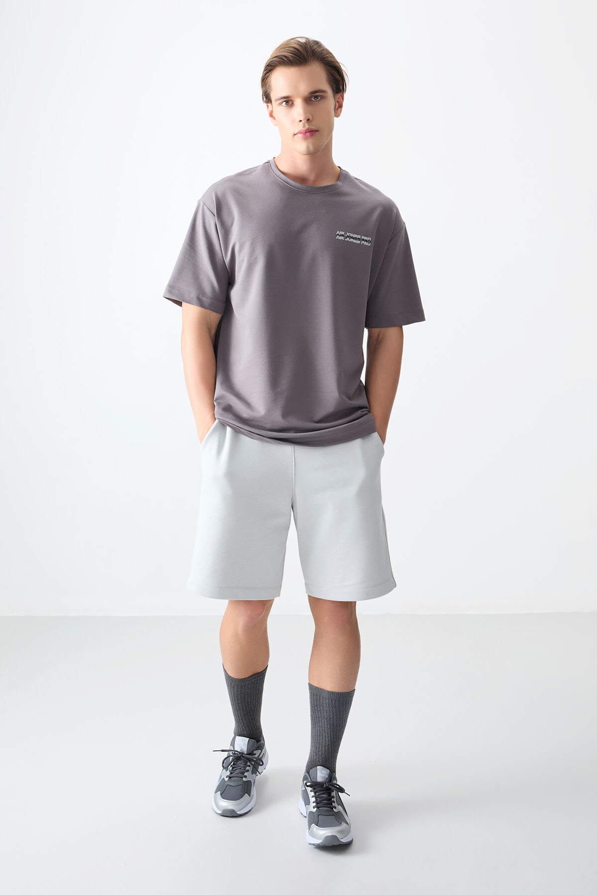 Koyu Gri Pamuklu Kalın Yumuşak Dokulu Oversize Fit Baskılı Erkek T-Shirt - 88375