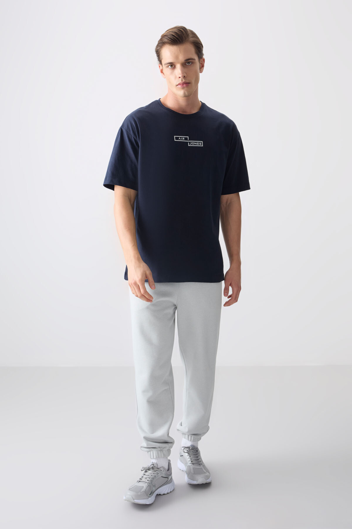 Lacivert %100 Pamuk Kalın Yumuşak Dokulu Oversize Fit Baskılı Erkek T-Shirt - 88361