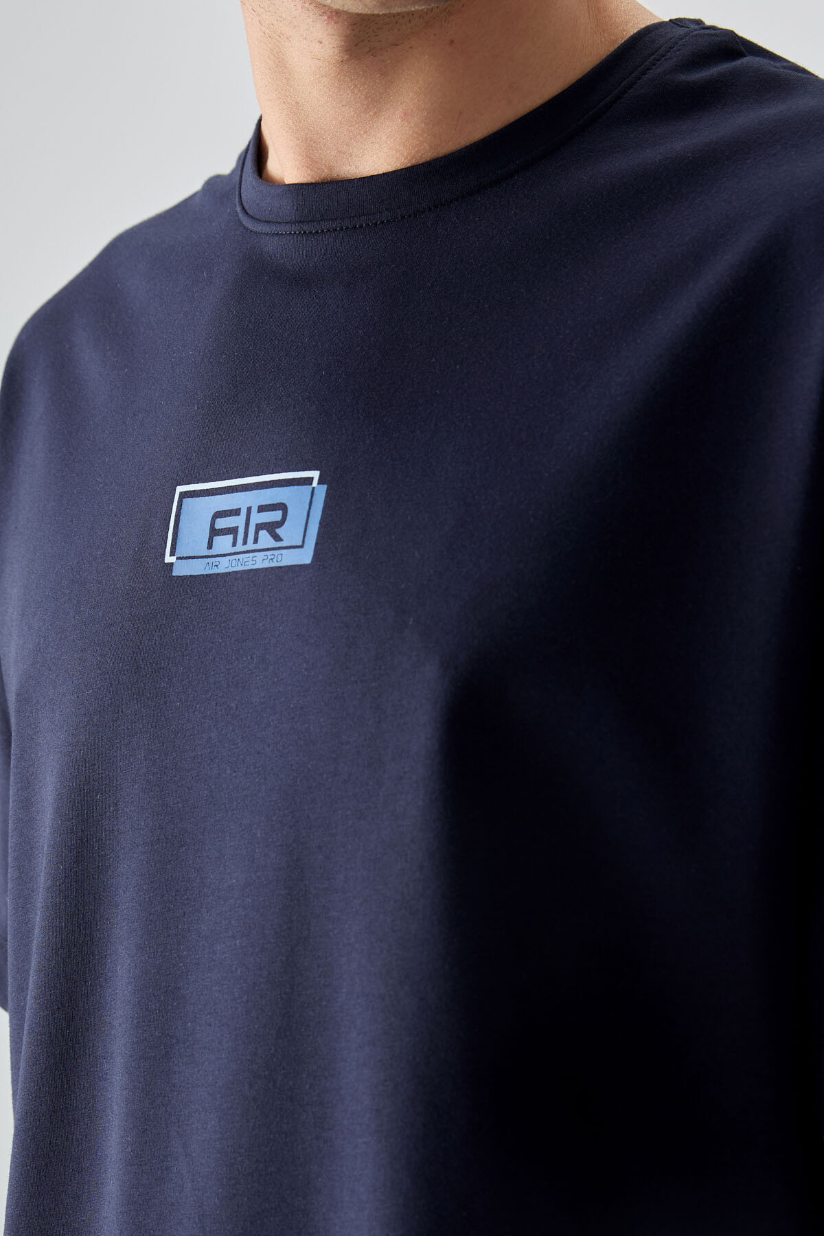 Lacivert Pamuklu Kalın Yumuşak Dokulu Oversize Fit Baskılı Erkek T-Shirt - 88376