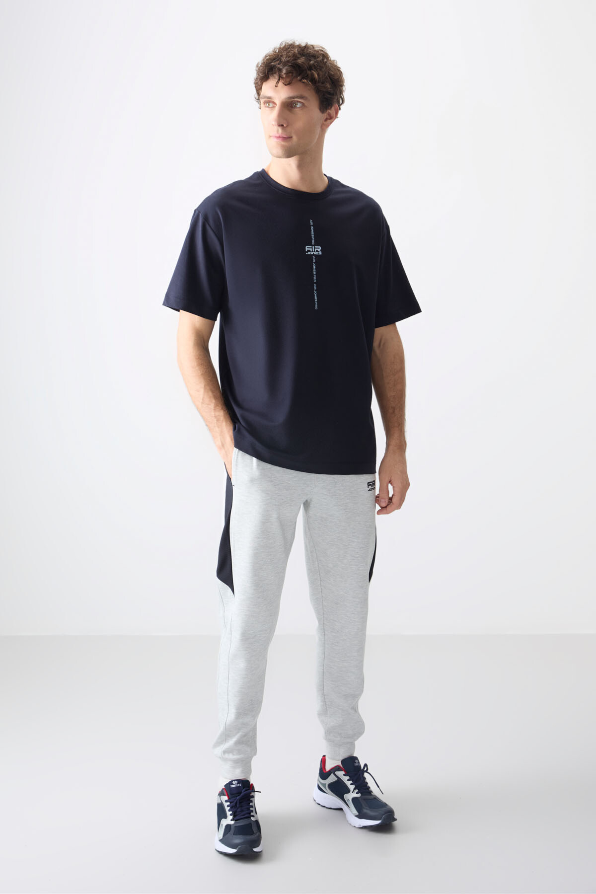 Lacivert Pamuklu Kalın Yumuşak Dokulu Oversize Fit Baskılı Erkek T-Shirt - 88373