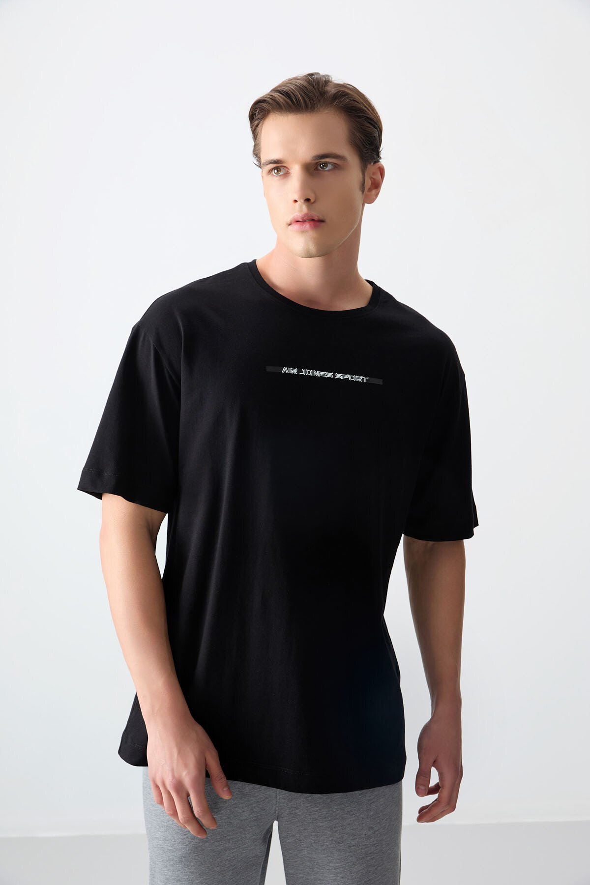 Siyah %100 Pamuk Kalın Yumuşak Dokulu Oversize Fit Baskılı Erkek T-Shirt - 88358