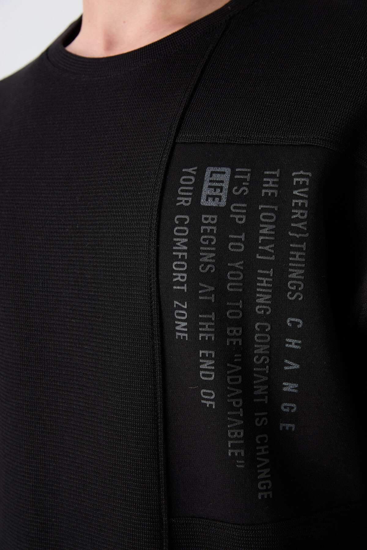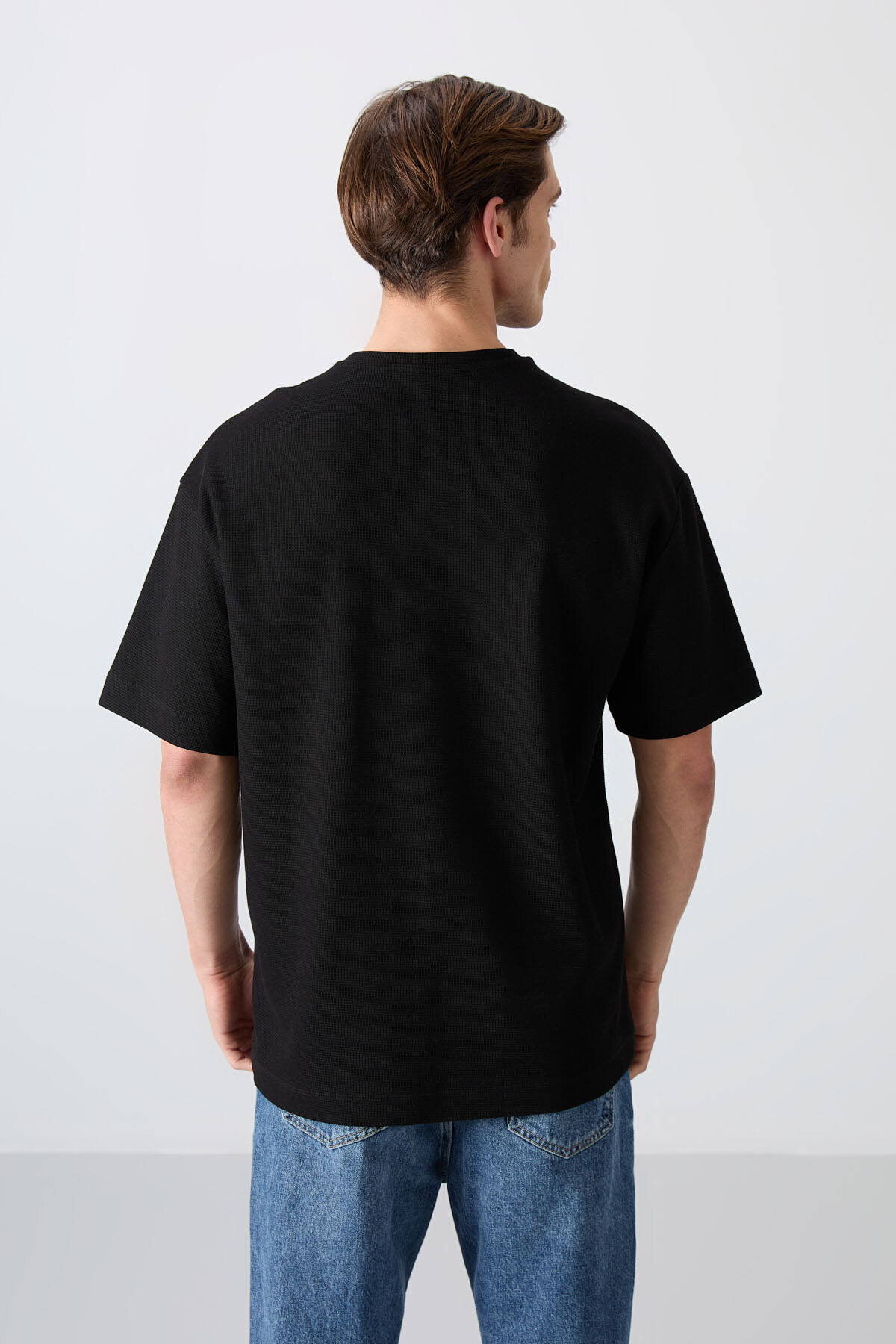Siyah Pamuklu Kalın Yüzeyi Dokulu Oversize Fit Baskılı Erkek T-Shirt - 88338