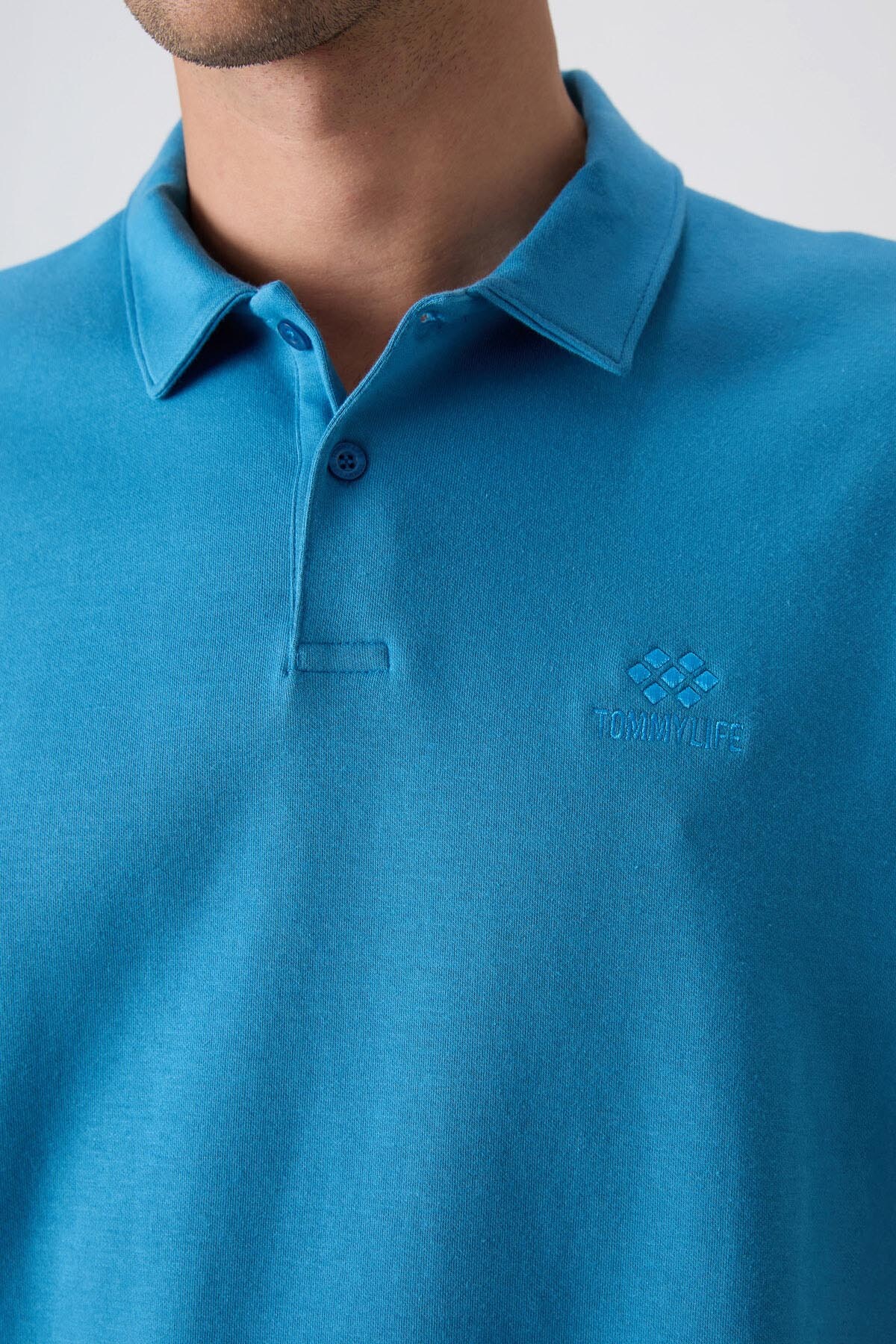 Petrol Mavi Pamuklu Kalın Yumuşak Dokulu Oversize Fit Basic Polo Yaka Erkek T-Shirt - 88327