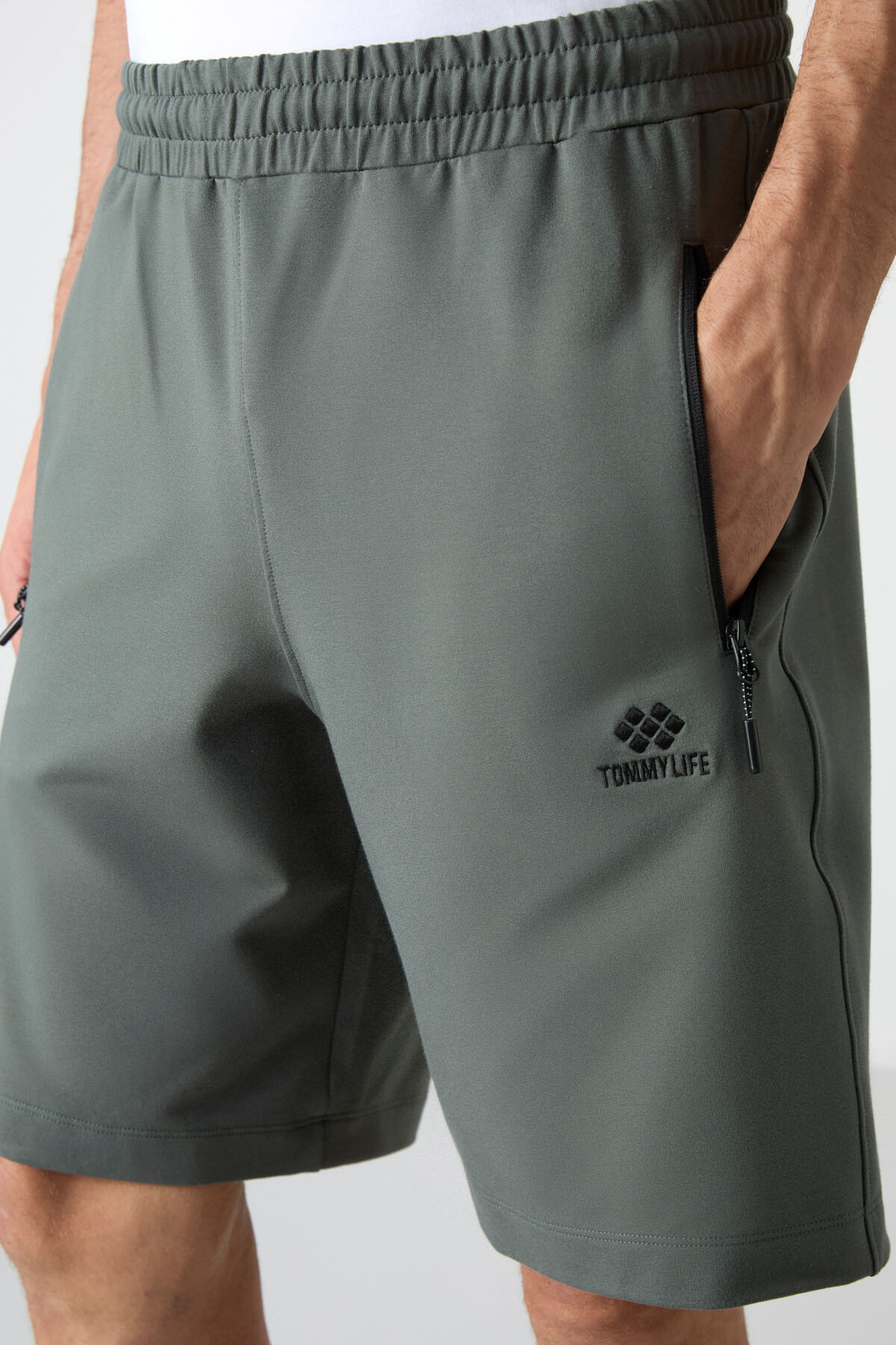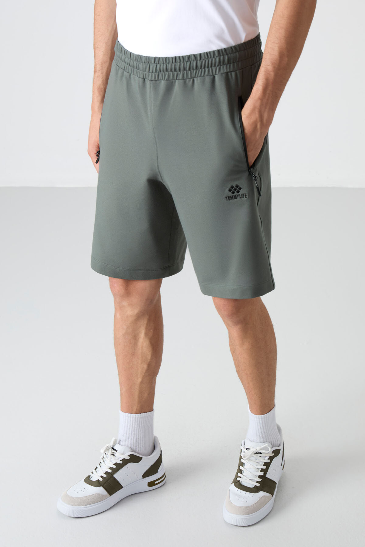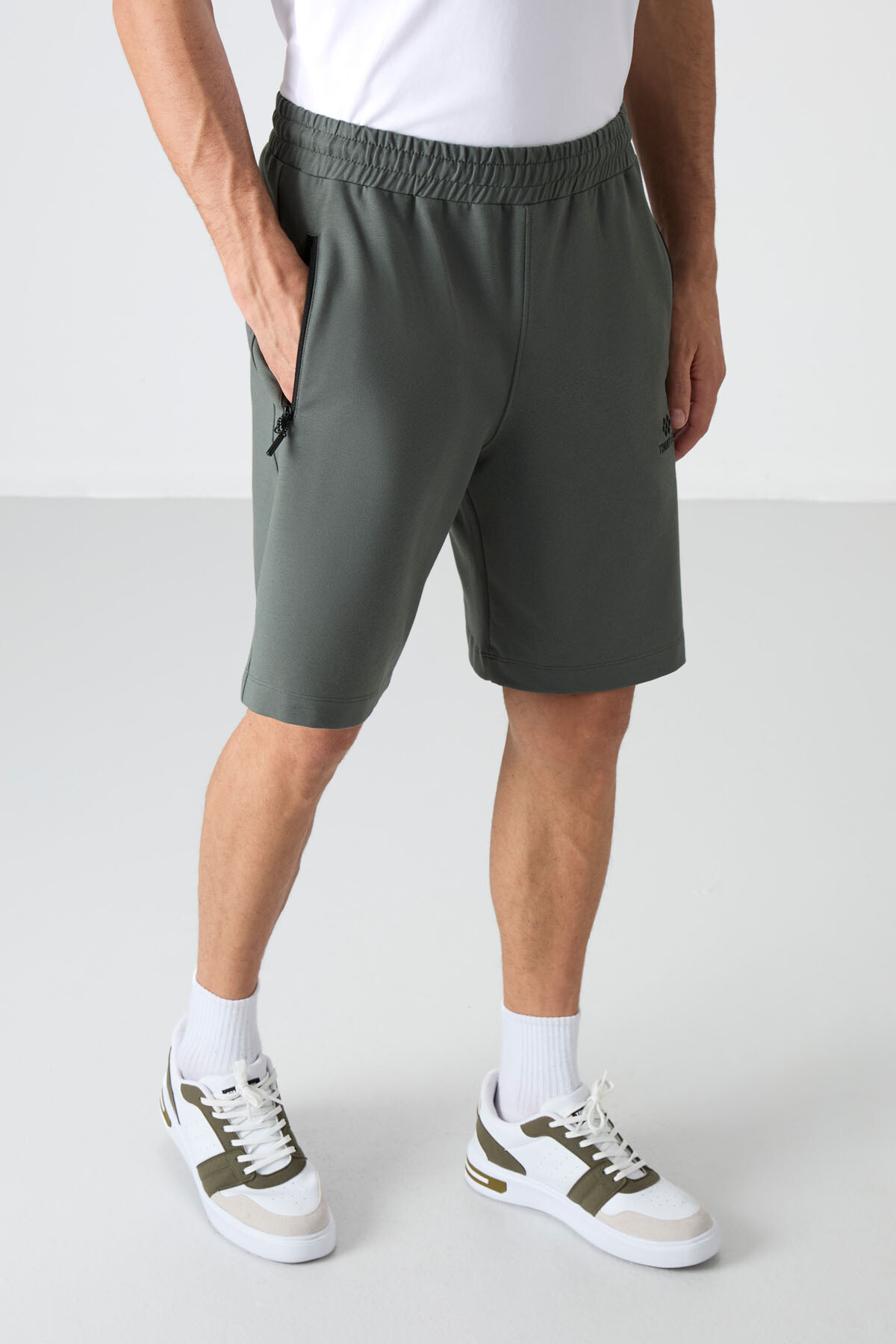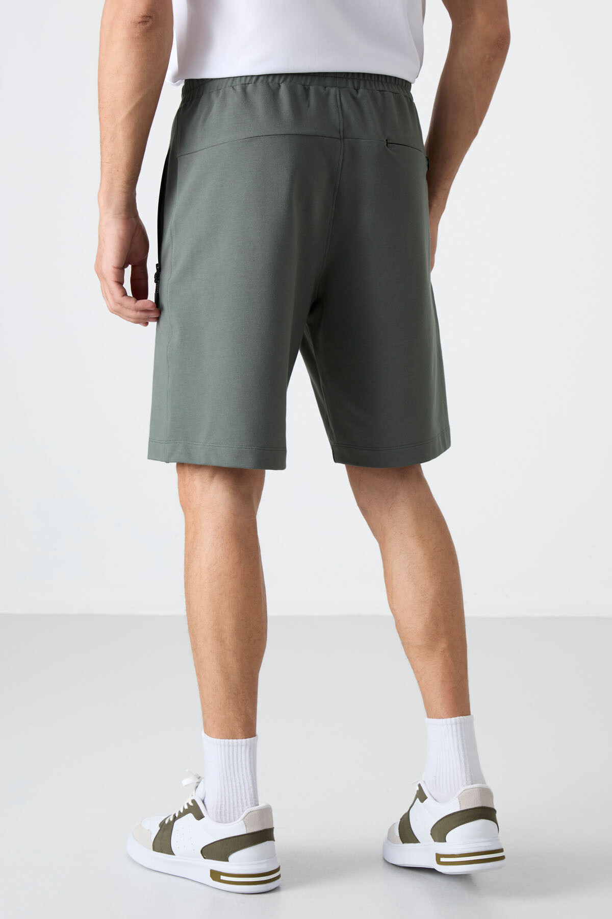 Haki Gizli Fermuar Arka Cepli Bağcıklı Standart Kalıp Erkek Şort - 81136