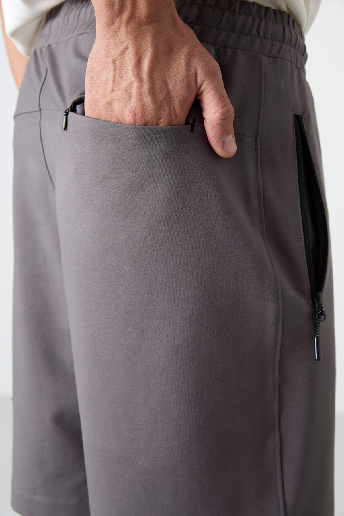 Koyu Gri Gizli Fermuar Arka Cepli Bağcıklı Standart Kalıp Erkek Şort - 81136