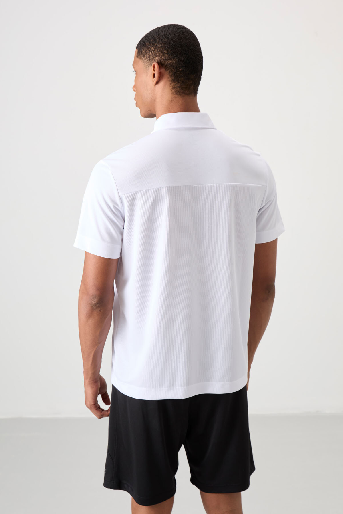 Beyaz Nefes Alan Dokulu İnce Esnek Standart Fit Polo Yaka Erkek Performans T-Shirt - 88402