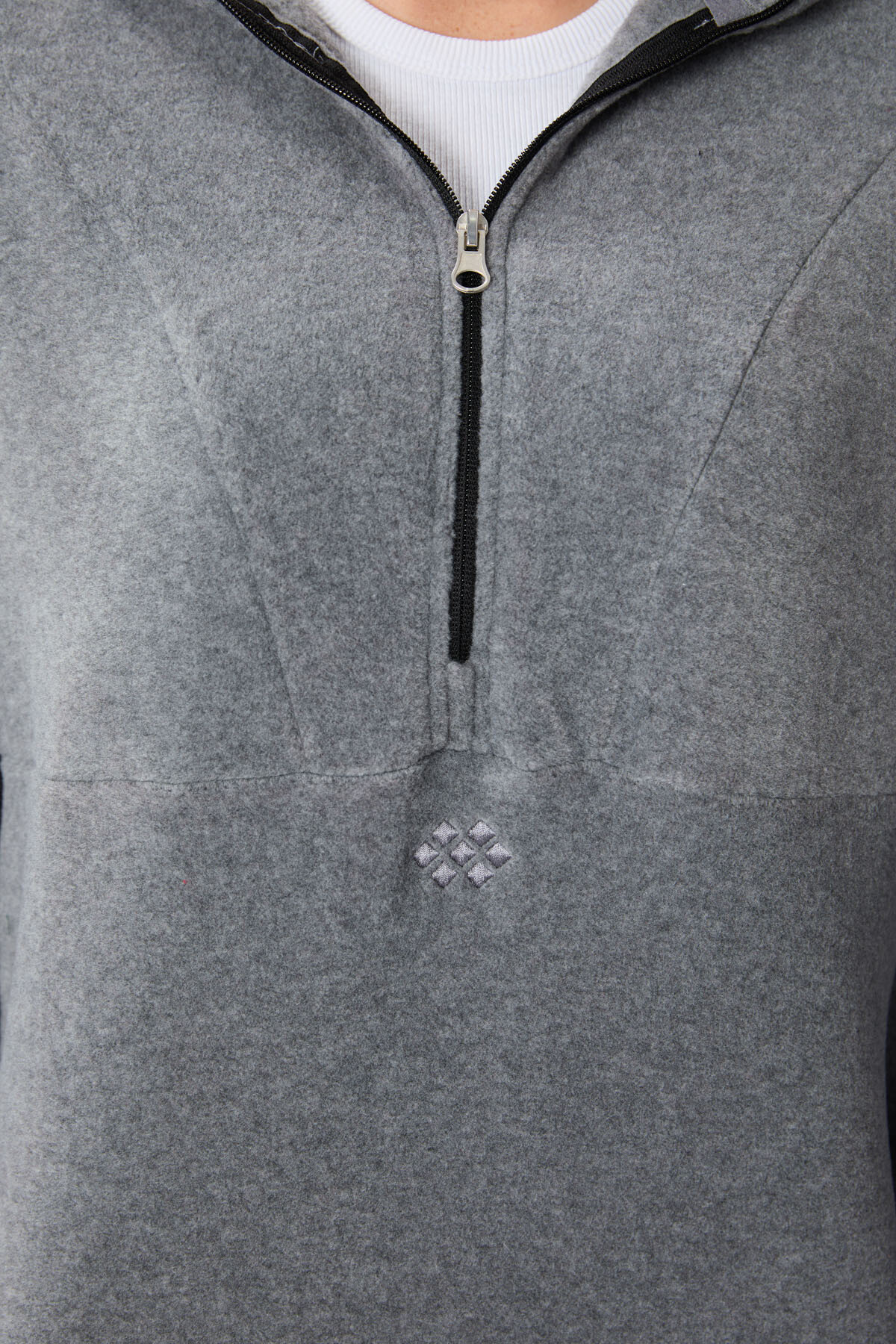 Gri Melanj Yarım Fermuar Etek Ucu Büzgülü Kadın Polar Oversize Sweatshirt - 97171