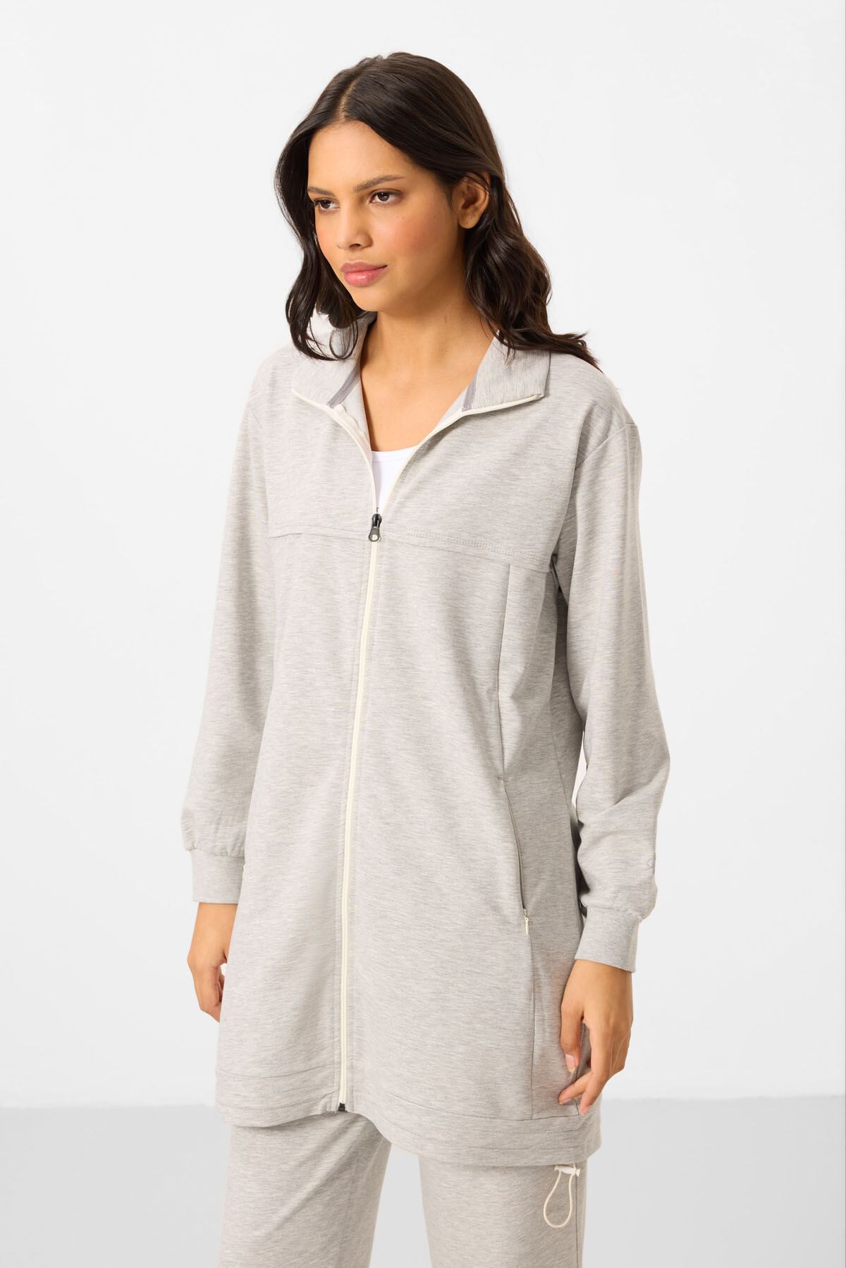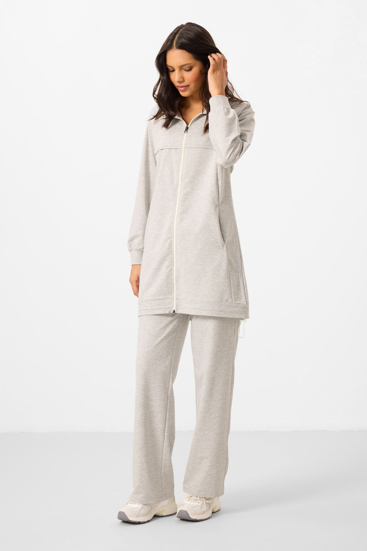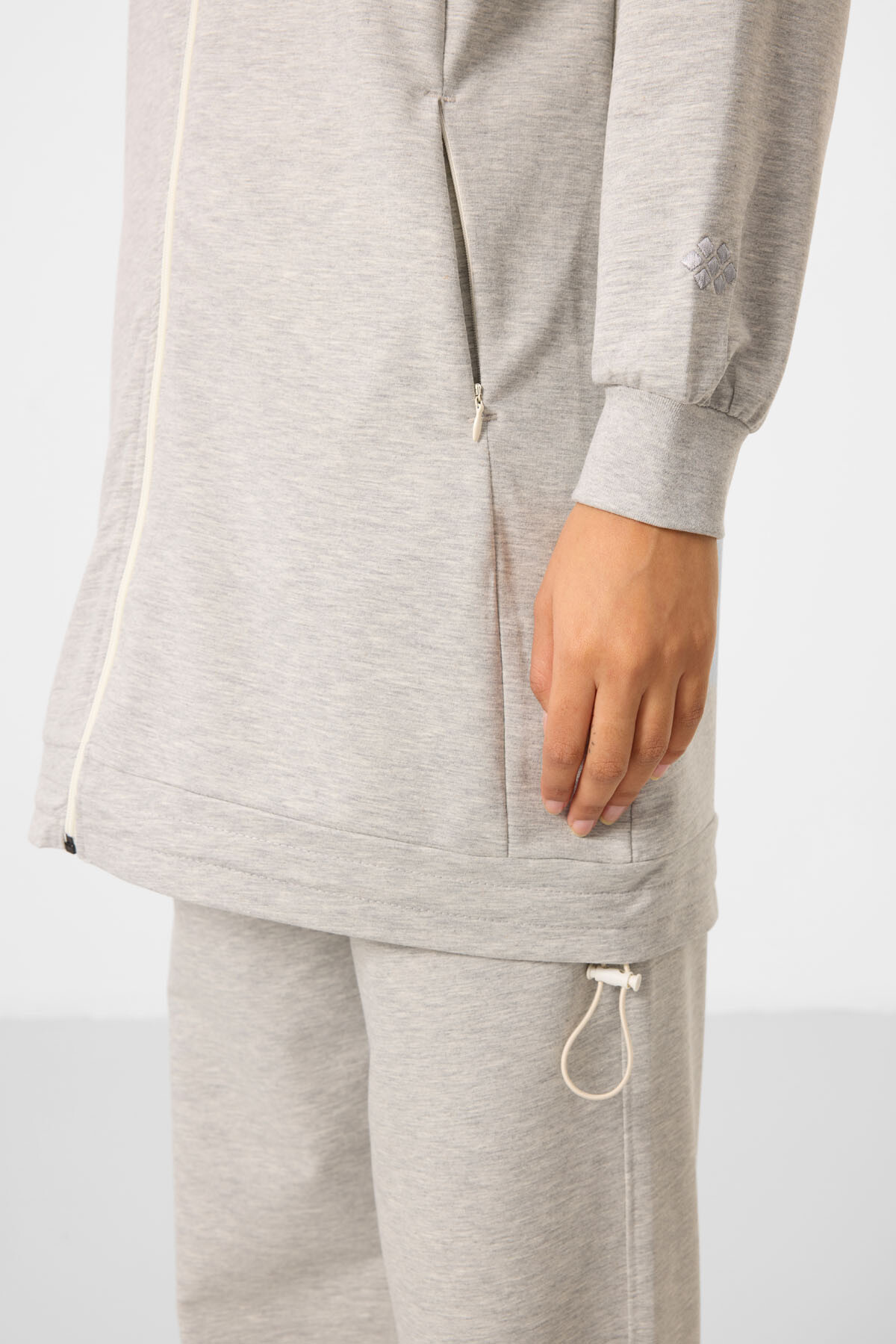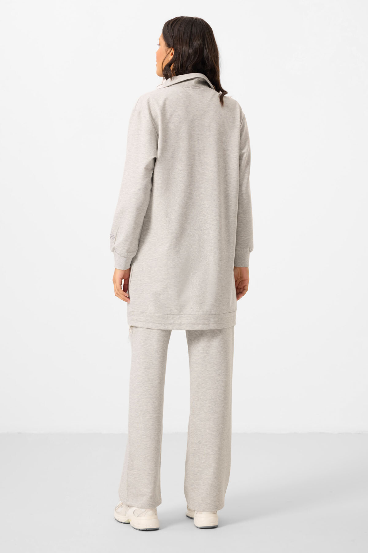 Gri melanjın yalın zarafetiyle tasarlanan bu tunik eşofman takımı, modern kesimiyle stilinizi tamamlıyor. Günlük rutininizde hem rahat hem de özenli görünmek istiyorsanız tam size göre! Hafif yapısı ve pamuklu dokusuyla gün boyu konfor sunar.