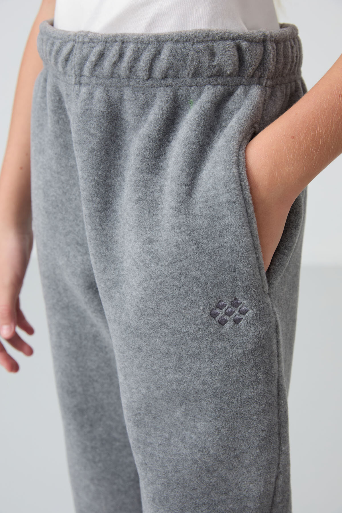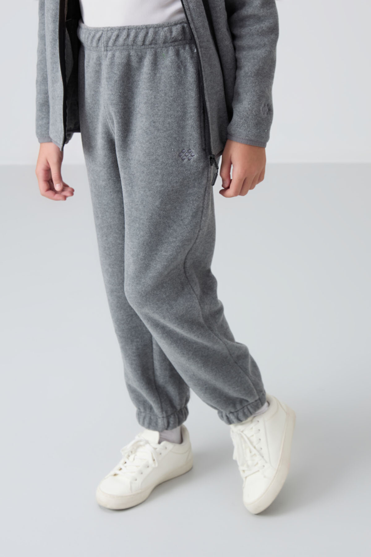 Gri Melanj Kalın Yumuşak Dokulu Standart Fit Nakışlı Polar Kız Çocuk Eşofman Alt - 75155
