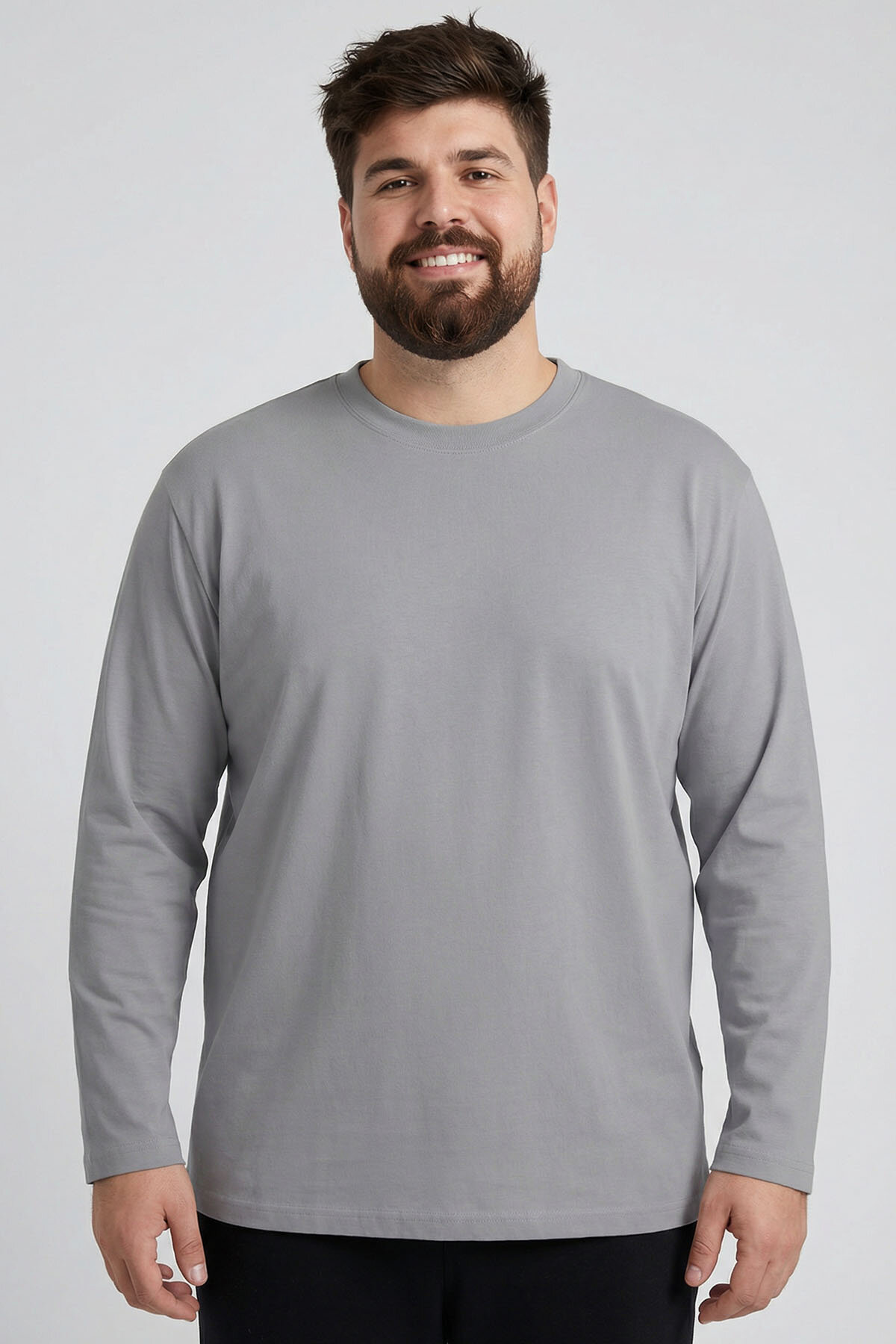 Gri O Yaka Rahat Form Battal Büyük Beden Uzun Kollu Erkek T-Shirt - 88107