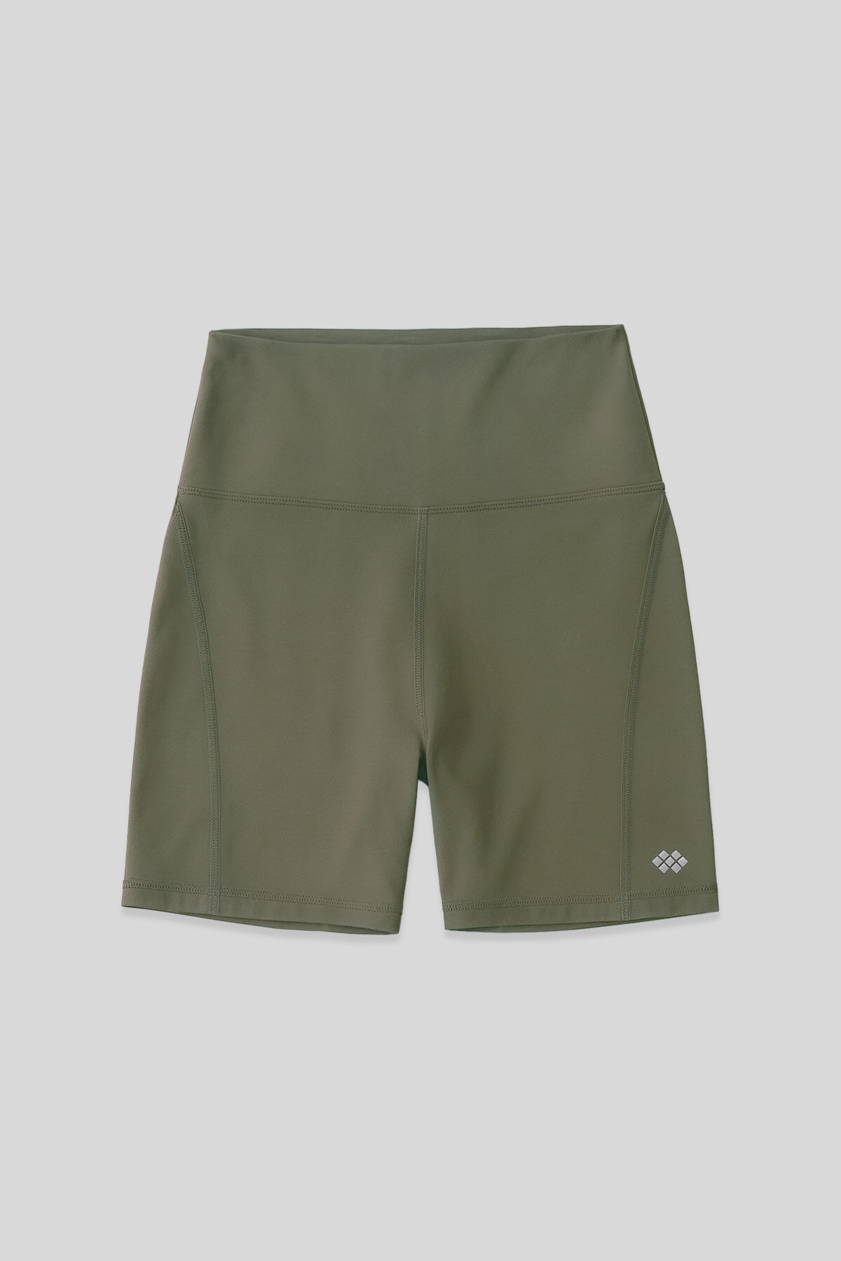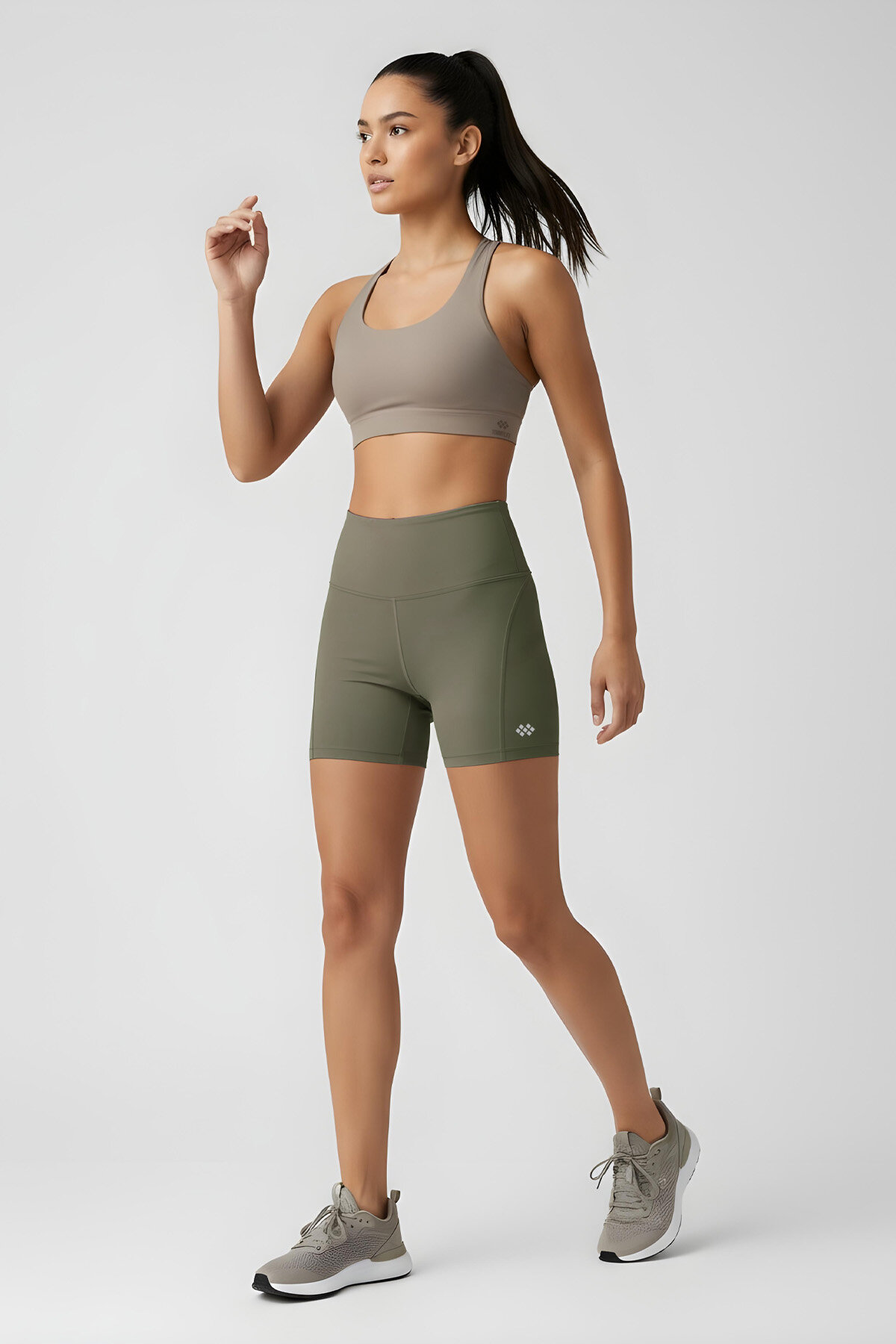 Haki Kemer Detaylı Yüksek Bel Slim Fit Kısa Biker Kadın Tayt - 91017